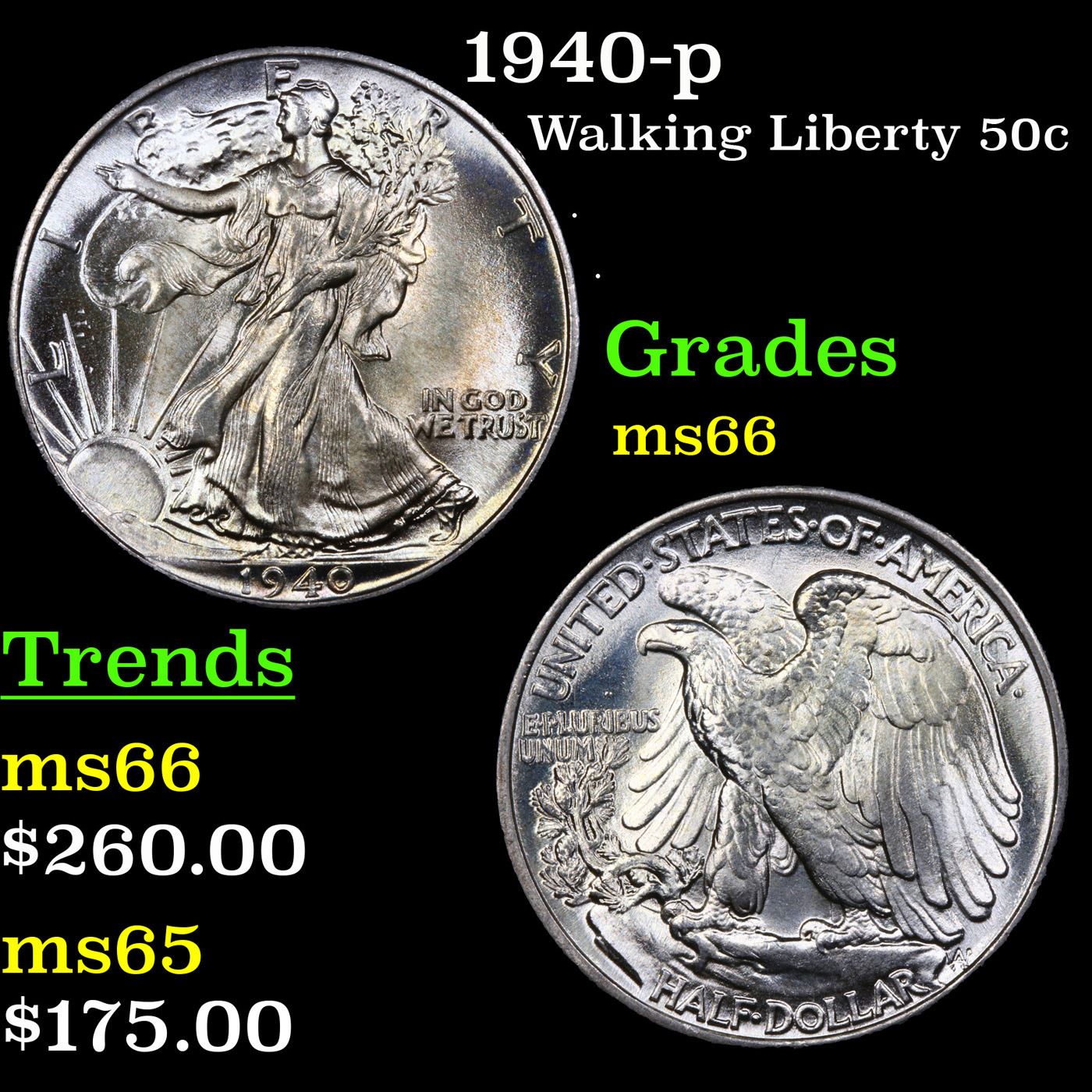 1940-p Walking Liberty Half Dollar 50c Grades GEM+ Unc.