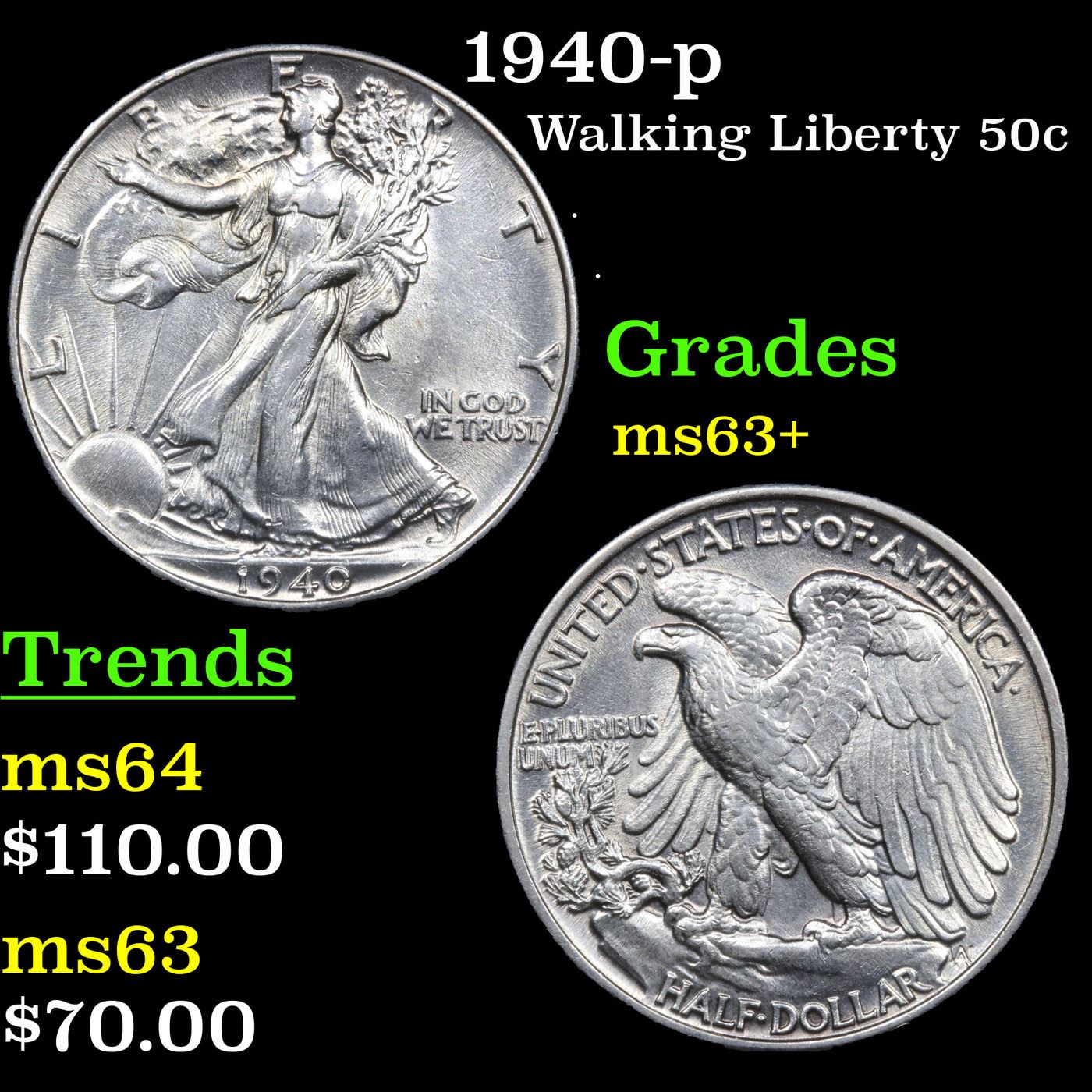1940-p Walking Liberty Half Dollar 50c Grades Select+ Unc.