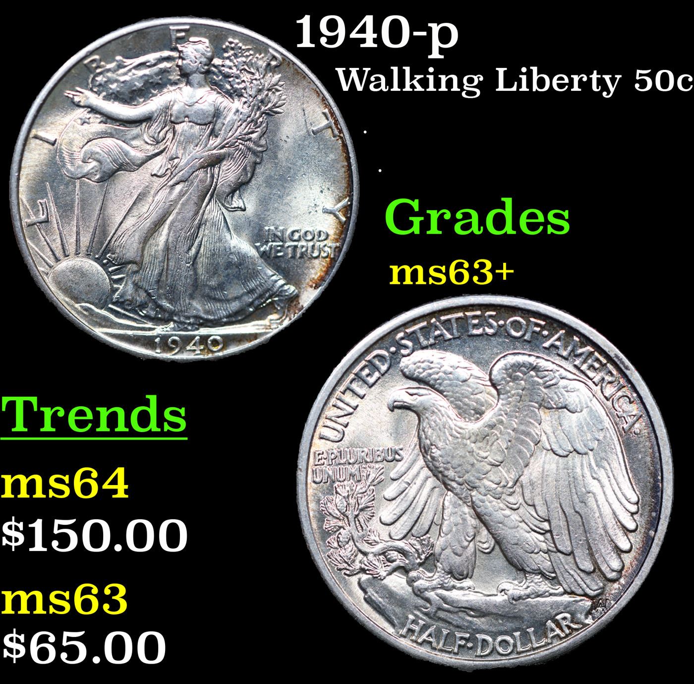 1940-p Walking Liberty Half Dollar 50c Grades Select+ Unc.
