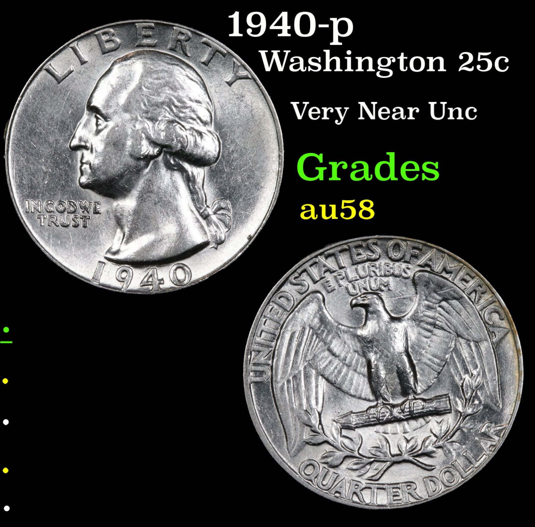 1940-p . Very Near Unc Washington Quarter 25c Grades Choice AU/BU Slider.