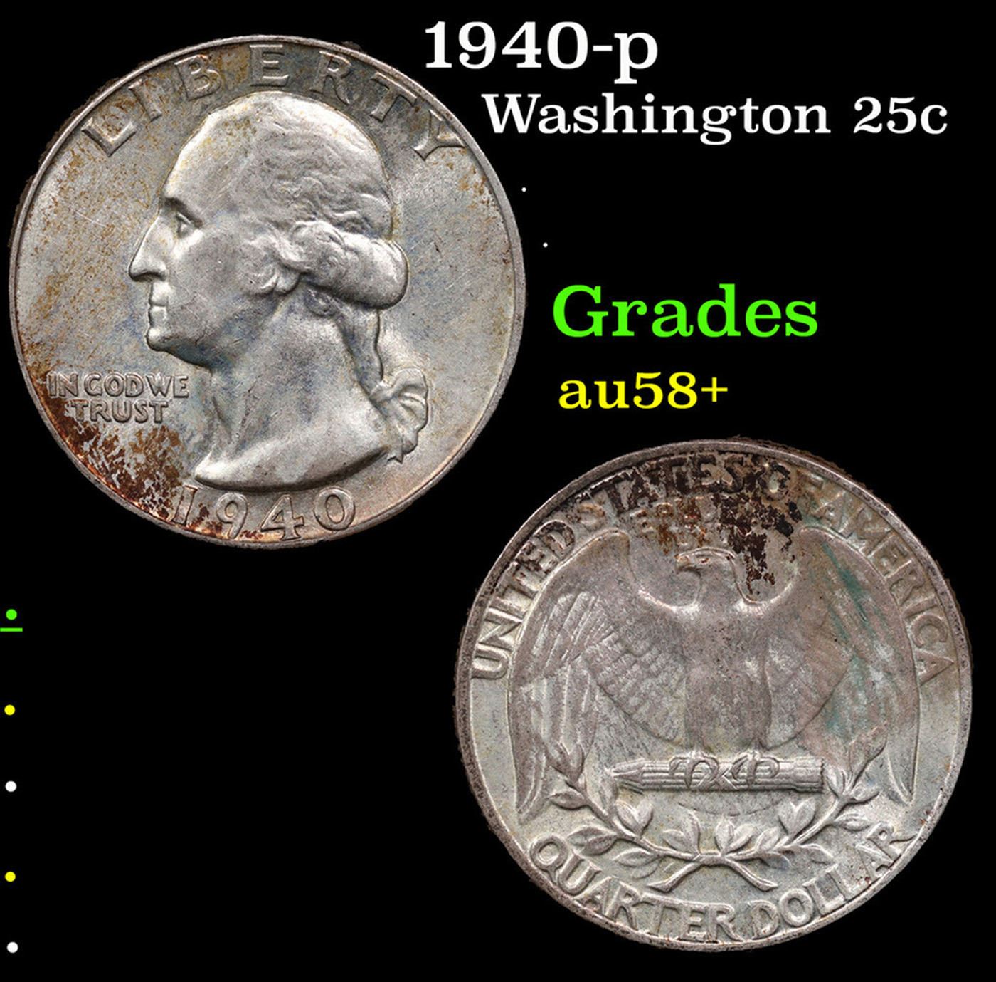 1940-p Washington Quarter 25c Grades Choice AU/BU Slider+.