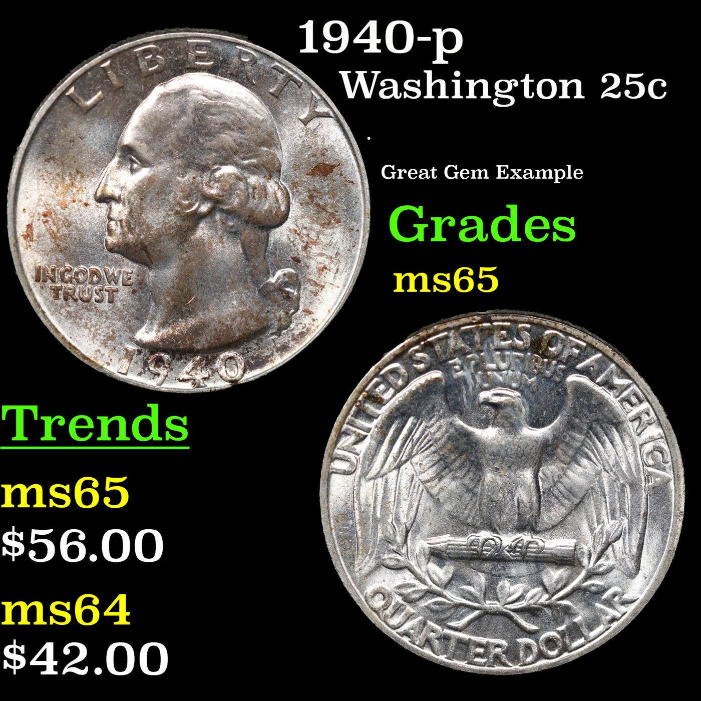 1940-p Washington Quarter 25c Grades GEM Unc.