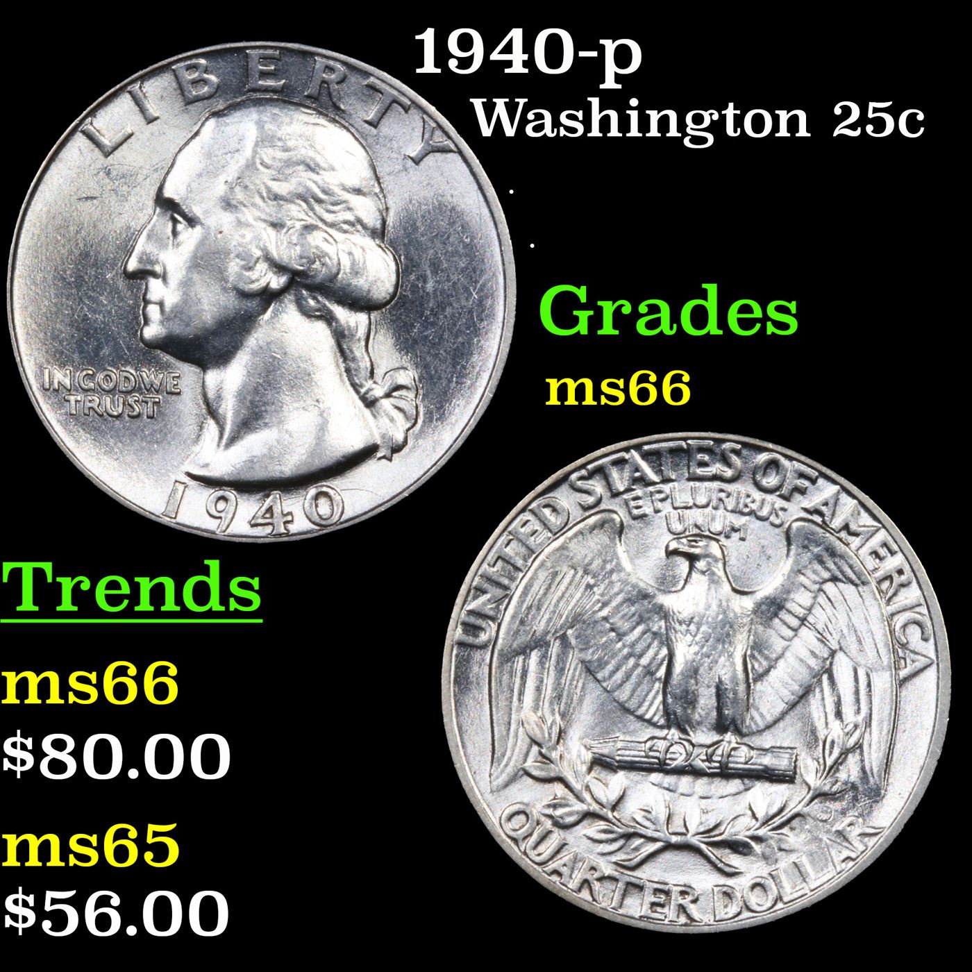 1940-p Washington Quarter 25c Grades GEM+ Unc.