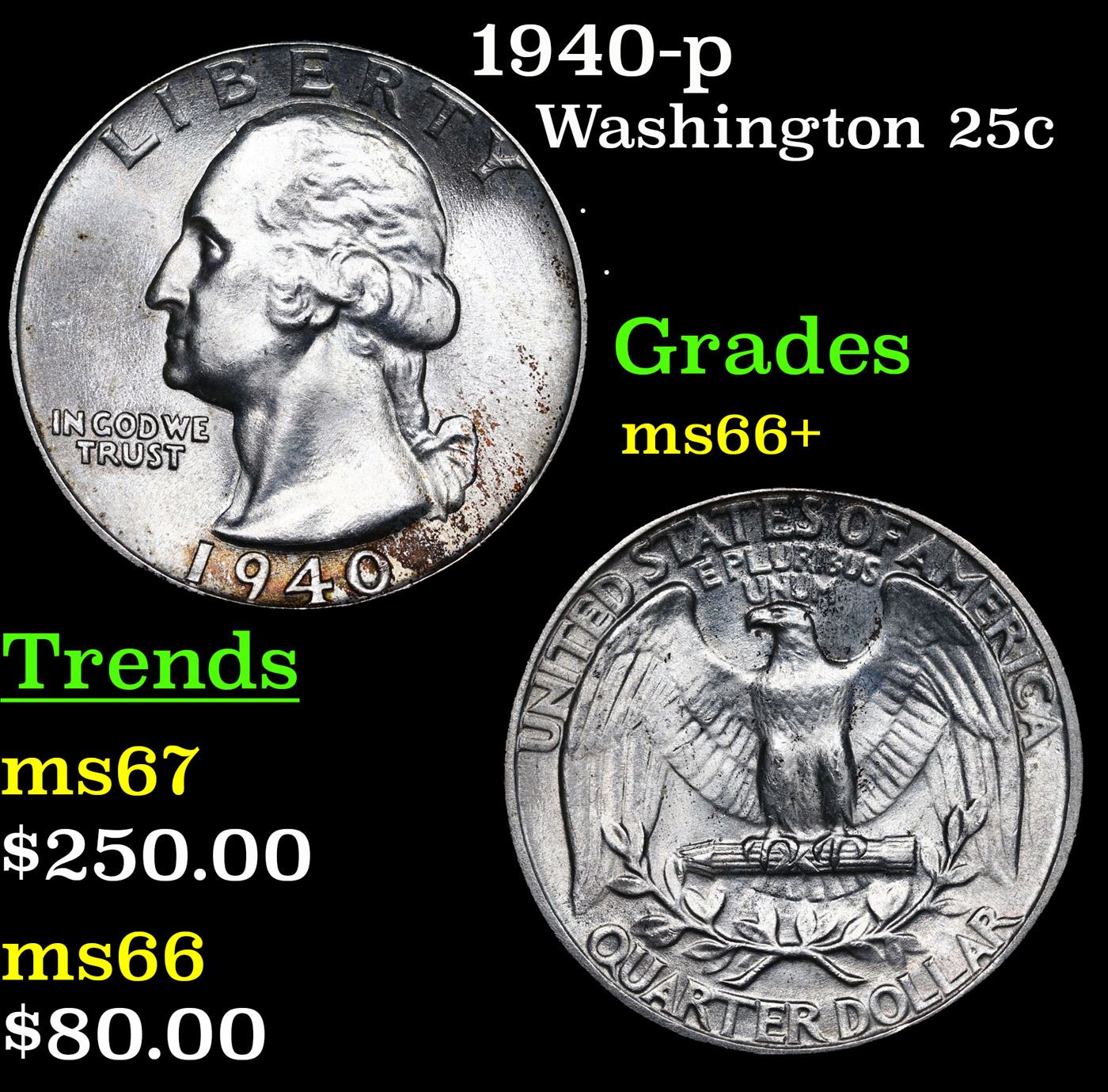 1940-p Washington Quarter 25c Grades GEM++ Unc.