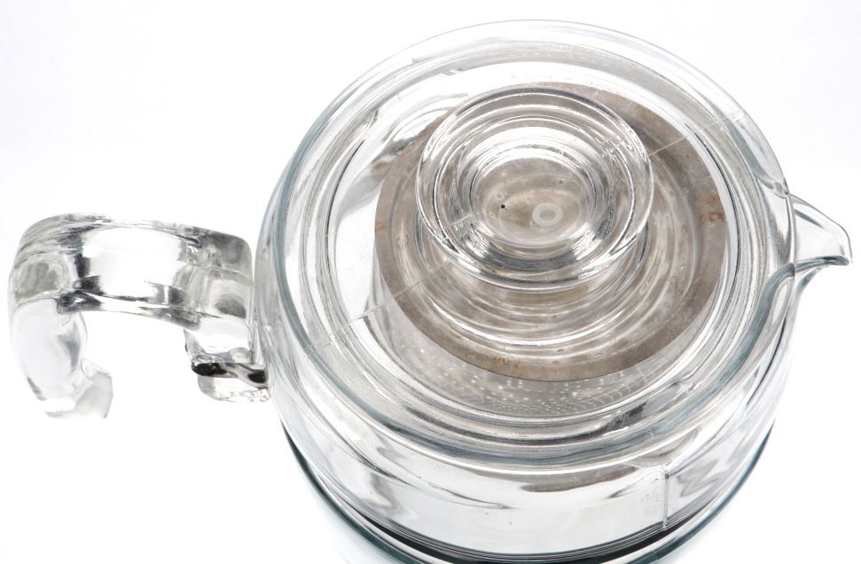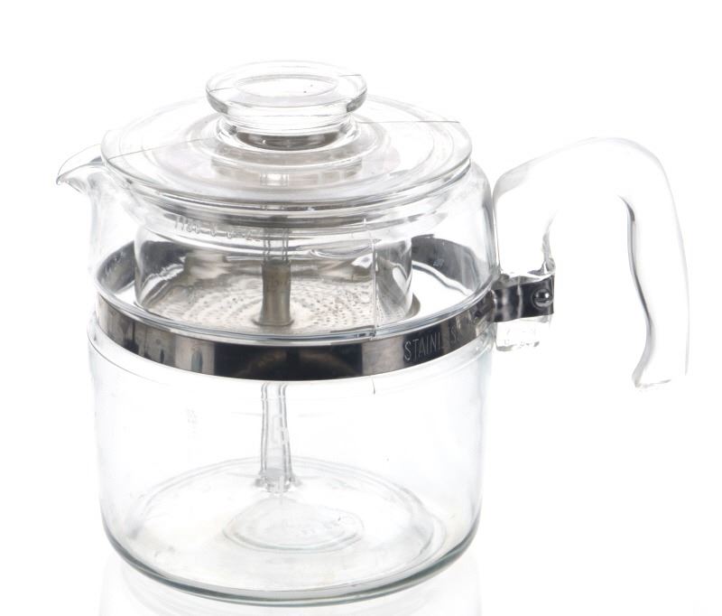 Offered in this lot are two Pyrex Glass coffee percolators from the 1940's and 50's and a Bentley-Beale Air-O-Mixer from 1910's-1930's. The first coffee "pot" is tall with a glass column for a handle on the stainless-steel rim. The second "pot" is shorter and holds 6 cups. This pot has a horseshoe shaped handle. Both pots bear the PYREX name. The Air-O-Mixer, made by Bently-Beale Inc. from Montgomery, Alabama, was an all-in-one kitchen tool. On the side, in raised glass, it states it is an "Egg Beater, Drink Mixer, Cream Whipper, Mayonnaise Mixer". Measurements on the side show up to 2 cups/1 pint half-way up, so there is room to whip-up what you are working. All three of these items are in excellent, useable condition, with all parts intact and no signs of damage.