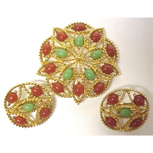 Lovely 3 piece set consisiting beautiful fashion jewelry brooch and earrings, Gorgeous set.,Made and signed by Sarah Coventry, Canada, Brooch measures close to 2" in diam. and earrings 1" in diam., Excellent condition - US Buyer please pay 7.00 for shipping plus insce., Thank You so much for looking!