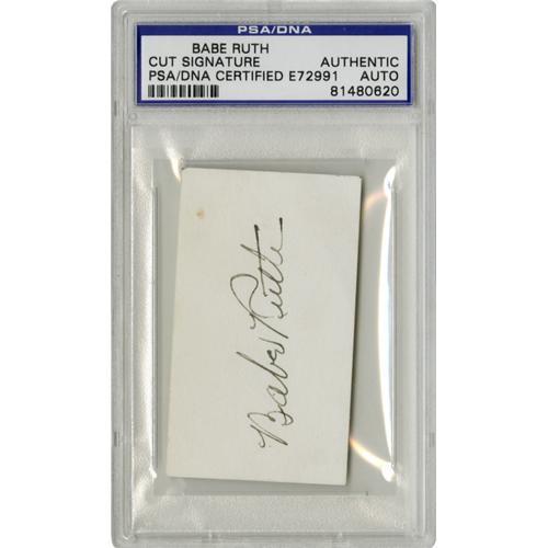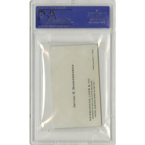 <B>1940's Babe Ruth Signed Business Card.</B></I> Springing into action when the thrilling opportunity presented itself, a New York City stockbroker produced his own business card to the great Bambino and requested that he autograph the blank backside. The request was granted, resulting in a 9/10 black ink beauty that is essential to any serious baseball autograph collection. The card is slabbed by PSA/DNA for protection and unquestioned authenticity. <BR><BR><B>Important notice:</B> Heritage usually auctions material at the rate of 200-250 lots per hour. On some occasions eBay Live bid software or the Internet may not be able to keep up with the pace of the auction. We recommend placing a realistic absentee bid now as insurance to avoid disappointment. Occasionally the auctioneer may eliminate or reject an eBay Live bid, and the auctioneer may also reopen a lot after the close of the eBay live bidding (usually because we missed an audience bid), and may reject your bid even if it shows you as the winning bidder. By bidding via eBay Live, you agree that Heritage may award the lot to another bidder at its sole discretion under the circumstances described above or any other reasonable circumstances. Since eBay bids are not shown to us until we open the lot on the floor, we treat those bids just like floor bids. In most cases the floor responds before the eBay bid is presented to us, due to Internet lag time, so for consistency we have made it a policy that floor bids are always considered first over tie eBay live bids. Also please note that all Heritage lots purchased through eBay Live carry a 22.5% Buyer's Premium. Please make sure you read the Terms and Conditions before you bid. This lot is being auctioned in conjunction with a live floor auction by Heritage Galleries & Auctioneers. All final auction and invoice information will be supplied by Heritage Galleries & Auctioneers, and all other information should be considered preliminary. Lot:19078 <BR><BR><B>Winning Notification and Billing:</B> After the FINAL session in this auction is complete, Heritage will send e-mail and snail mail invoices. This process normally takes several days. All final auction and invoice information will be supplied by Heritage Galleries & Auctioneers, and all other information should be considered preliminary. <BR><BR>This auction will be conducted on a live auction floor and over the Internet through eBay Live. If you choose to place an absentee bid, please take a moment to <font color='#0000ff'><u><a href='http://pages.ebay.com/liveauctions/help/before/laabsentee.html'>learn how eBay Live absentee bidding works</a></u></font><font color='#000000'>