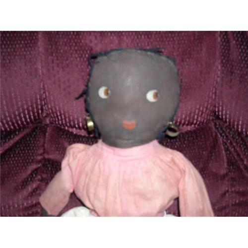 1940's Black Homemade Cloth with Painted Features. Doll is cotton stuffed. This doll is 20" tall. She has old clothing. Doll comes from a smoke free environment. Buyer to pay $20 for shipping, handling, and insurance. Thanks for viewing.