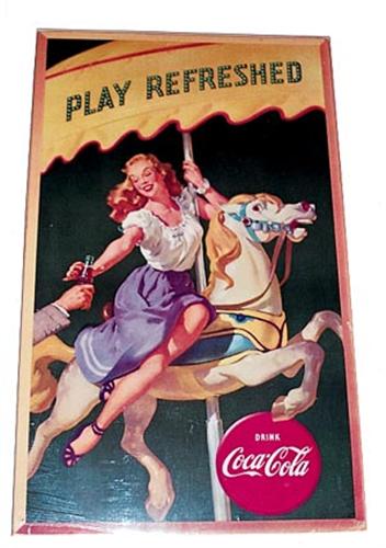 30"x50" features girl on carrousel horse. Very clean within the border with only a few small tiny surface nicks, marks and rubs and hairline scratches. Small crease upper right corner area, otherwise a few tack holes and tears in the border with border wear. Cond. 8.2-8.6.