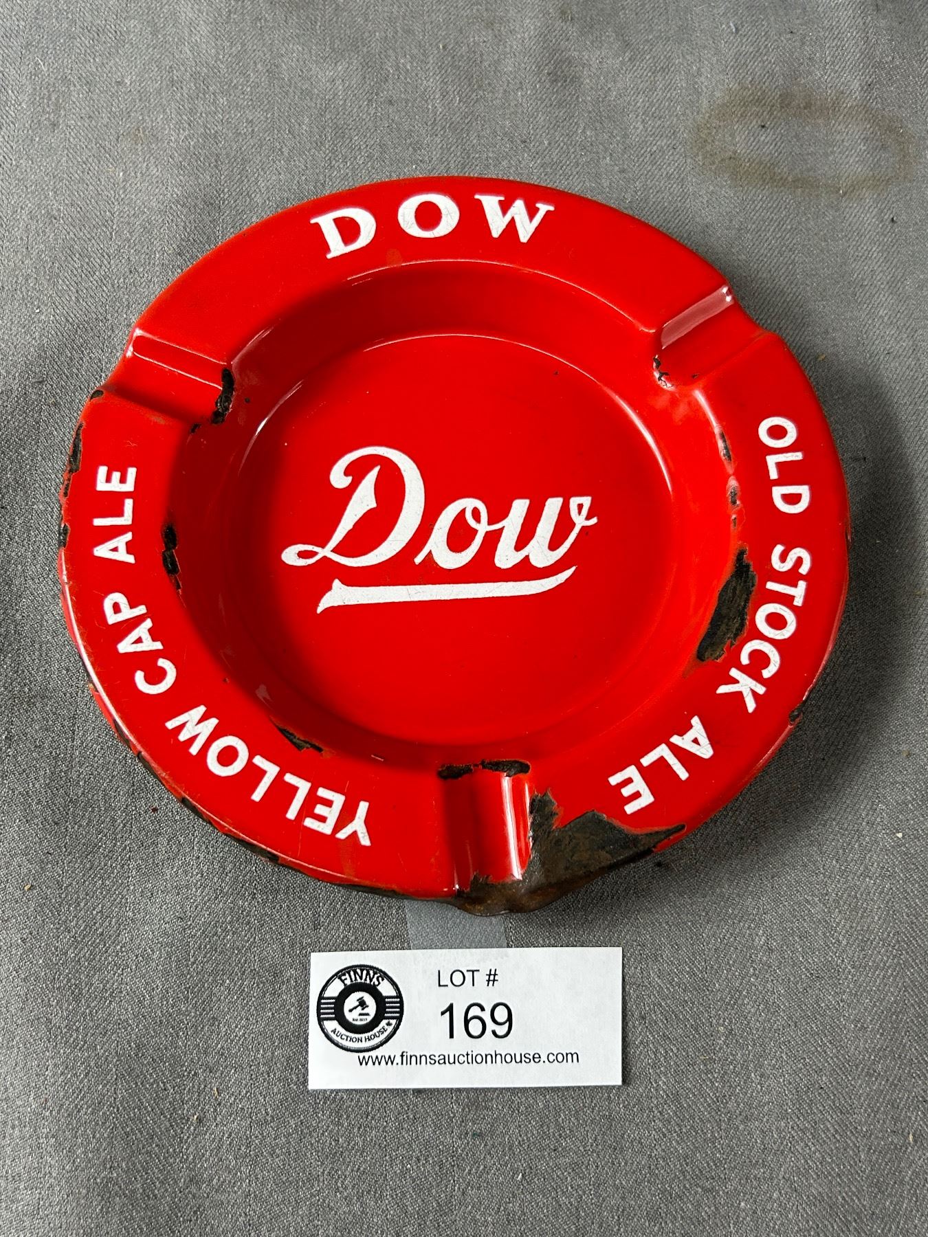 1940's DOW Old Stock Ale/Yellow Cap Ale, Porcelain Ashtray. 6 1/2" Diam