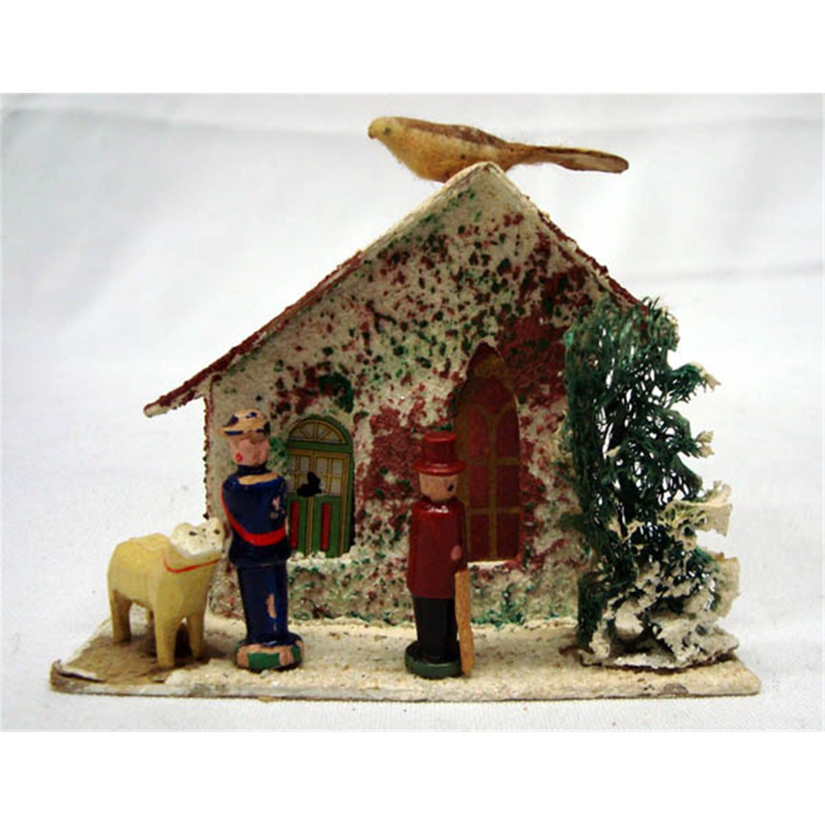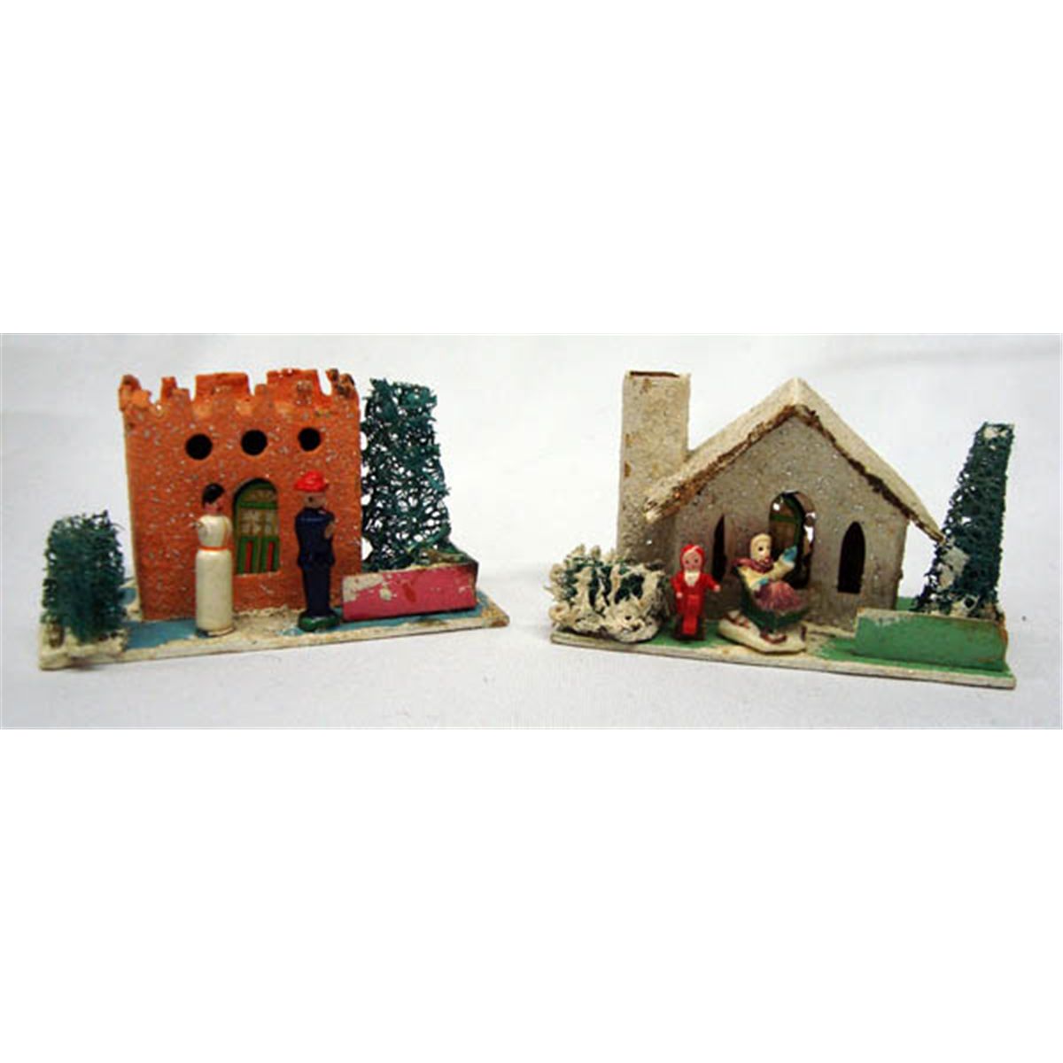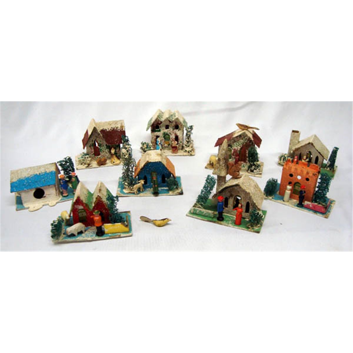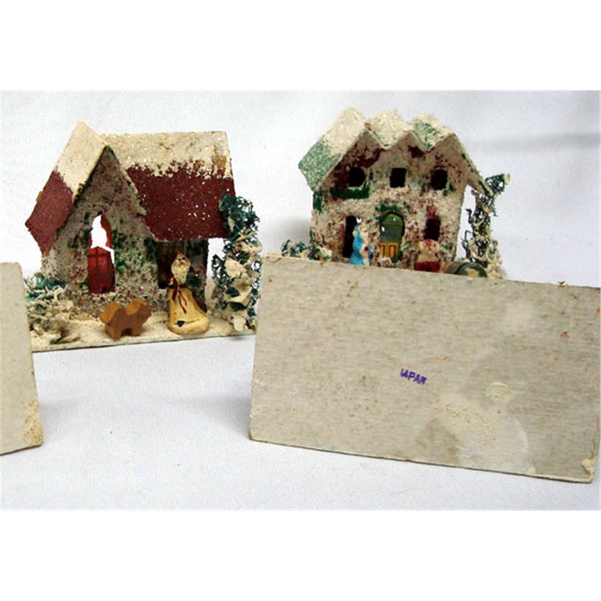 1940's Japanese Handmade Paper Christmas Houses with little people and trees. Nine total. Largest is 4.75''H x 4''L. Delicate. Some staining from age. Buyers Pay Actual Shipping and Handling Charges(see terms and conditions for more information)