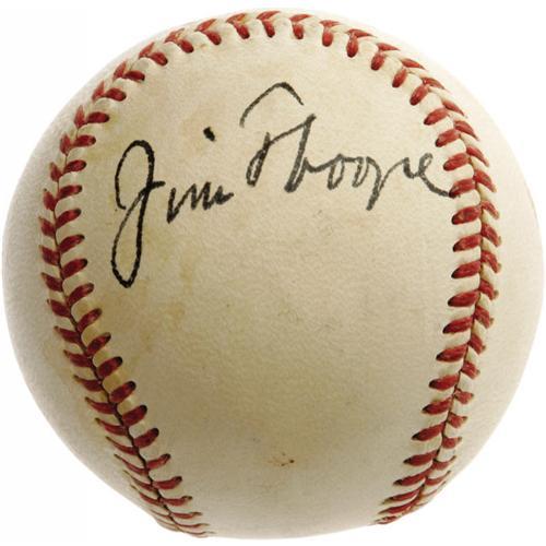 <B>1940's Jim Thorpe Single Signed Baseball, PSA NM-MT 8.</B></I> It's overkill, really, a Thorpe single of this exceptional quality. Offer any weather-beaten, faded and shellacked ball bearing the autograph of this Football Hall of Famer, 1912 Olympic Gold Medalist and member of the 1913 National League Championship New York Giants, and thousands of collectors will still sing its praises. Ask yourself--when was the last time you saw one, in any state of disrepair? We can't remember one either. And while we won't be so bold as to claim that another will never surface, we feel entirely comfortable in claiming that you couldn't possibly ever find one finer than the OAL (Harridge) ball you see before you here. The side panel autograph from this uniquely gifted Native American legend is rendered in black fountain pen ink so bold that you could read it from the next county, rating a "9" on a scale of ten according to PSA/DNA, which explains that a point was deducted only due to the fact that the tail end of the letter "e" in Thorpe brushes the ball's stitching. In the absence of this rather insignificant issue, this sixty-year old autograph would be deemed unimprovable. The composite grade of NM-MT 8 is the result of a grade of "6" for the ball itself, resultant of light, patchy toning and fading of the ball's stamping. As our catalog imagery should surely convey, however, the visual appeal of the ball and the autograph itself are not harmed by this natural aging process. Like a gourmet chef supermodel, or a Big League pitcher that bats .300, this ball is better than anything of which we could have possibly dreamed. <I>LOA from PSA/DNA.</B></I> <BR><BR><B>Important notice:</B> Heritage usually auctions material at the rate of 200-250 lots per hour. On some occasions eBay Live bid software or the Internet may not be able to keep up with the pace of the auction. We recommend placing a realistic absentee bid now as insurance to avoid disappointment. Occasionally the auctioneer may eliminate or reject an eBay Live bid, and the auctioneer may also reopen a lot after the close of the eBay live bidding (usually because we missed an audience bid), and may reject your bid even if it shows you as the winning bidder. By bidding via eBay Live, you agree that Heritage may award the lot to another bidder at its sole discretion under the circumstances described above or any other reasonable circumstances. Since eBay bids are not shown to us until we open the lot on the floor, we treat those bids just like floor bids. In most cases the floor responds before the eBay bid is presented to us, due to Internet lag time, so for consistency we have made it a policy that floor bids are always considered first over tie eBay live bids. Also please note that all Heritage lots purchased through eBay Live carry a 22.5% Buyer's Premium. Please make sure you read the Terms and Conditions before you bid. This lot is being auctioned in conjunction with a live floor auction by Heritage Galleries & Auctioneers. All final auction and invoice information will be supplied by Heritage Galleries & Auctioneers, and all other information should be considered preliminary. Lot:19339 <BR><BR><B>Winning Notification and Billing:</B> After the FINAL session in this auction is complete, Heritage will send e-mail and snail mail invoices. This process normally takes several days. All final auction and invoice information will be supplied by Heritage Galleries & Auctioneers, and all other information should be considered preliminary. <BR><BR>This auction will be conducted on a live auction floor and over the Internet through eBay Live. If you choose to place an absentee bid, please take a moment to <font color='#0000ff'><u><a href='http://pages.ebay.com/liveauctions/help/before/laabsentee.html'>learn how eBay Live absentee bidding works</a></u></font><font color='#000000'>