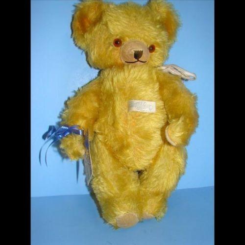 1940's Knickerbocker Musical Bear. Stitcked Nose, Glass button eyes, very good condition. Original Tag. 13" tall. Weight 1.2 lbs.