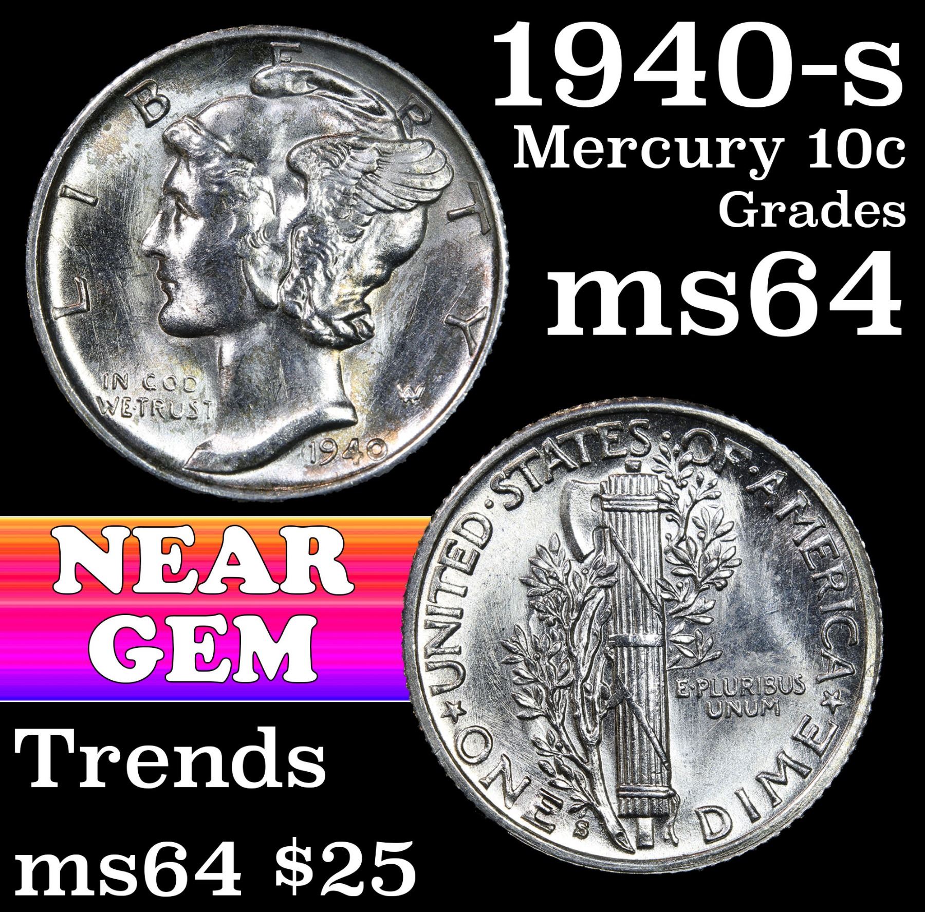 1940-s Mercury Dime 10c Grades Choice Unc.