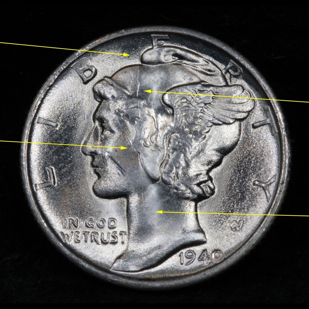 1940-s Mercury Dime 10c Grades Choice Unc.