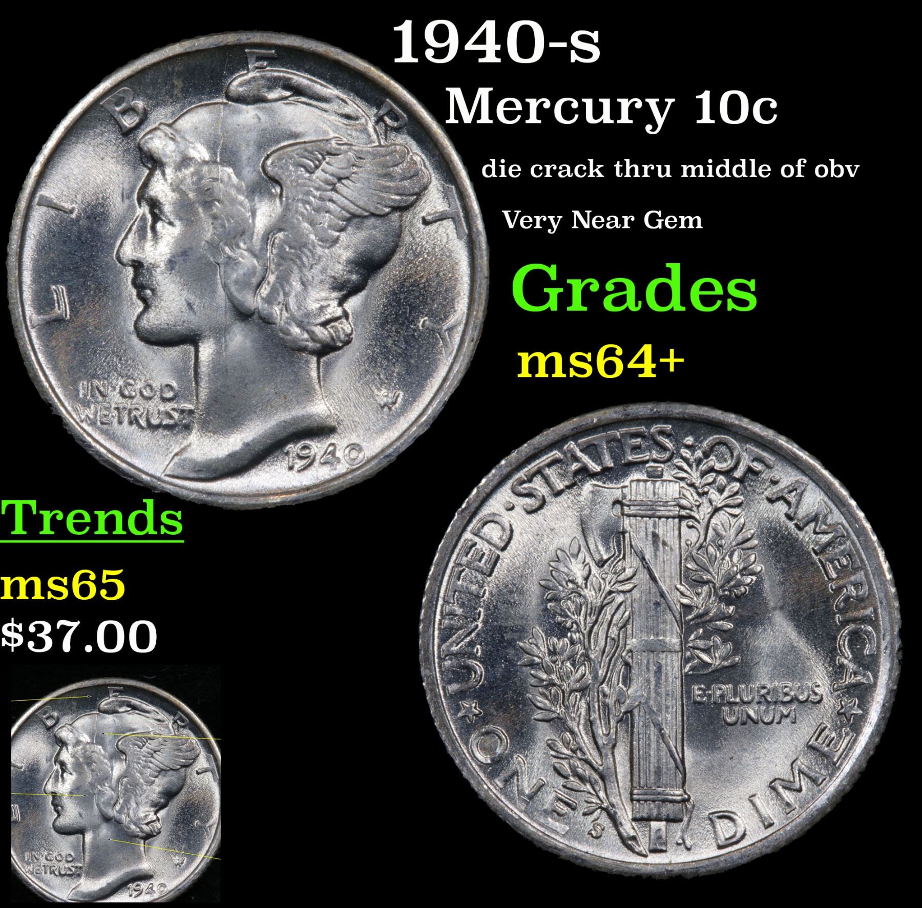 1940-s Mercury Dime 10c Grades Choice+ Unc.