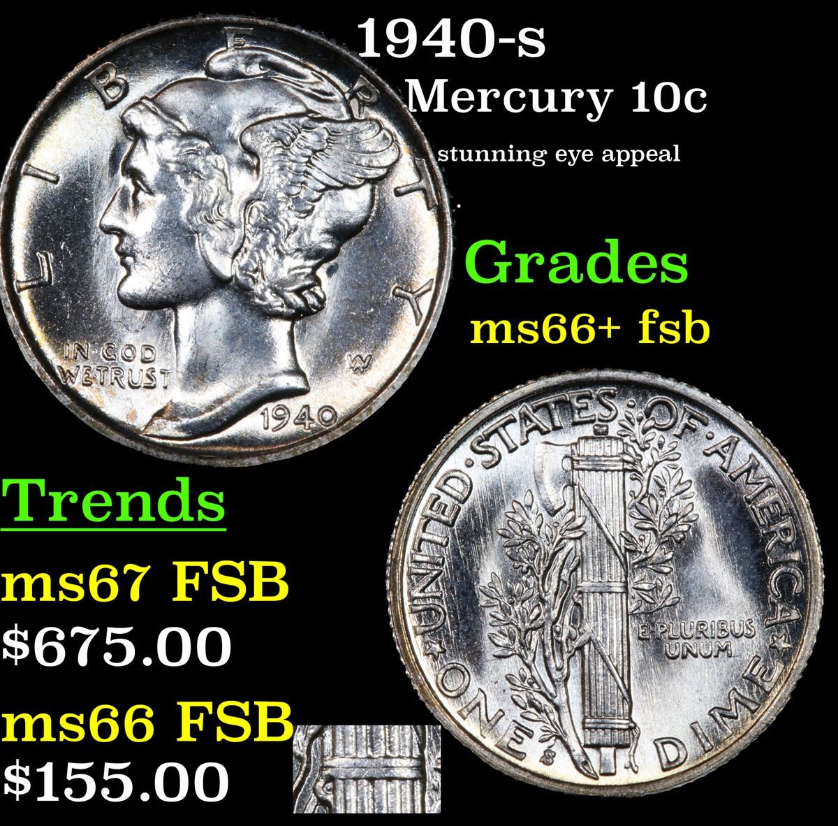 1940-s stunning eye appeal . Mercury Dime 10c Grades GEM++ FSB.         A Corey's Pick, Bid to Win Coin