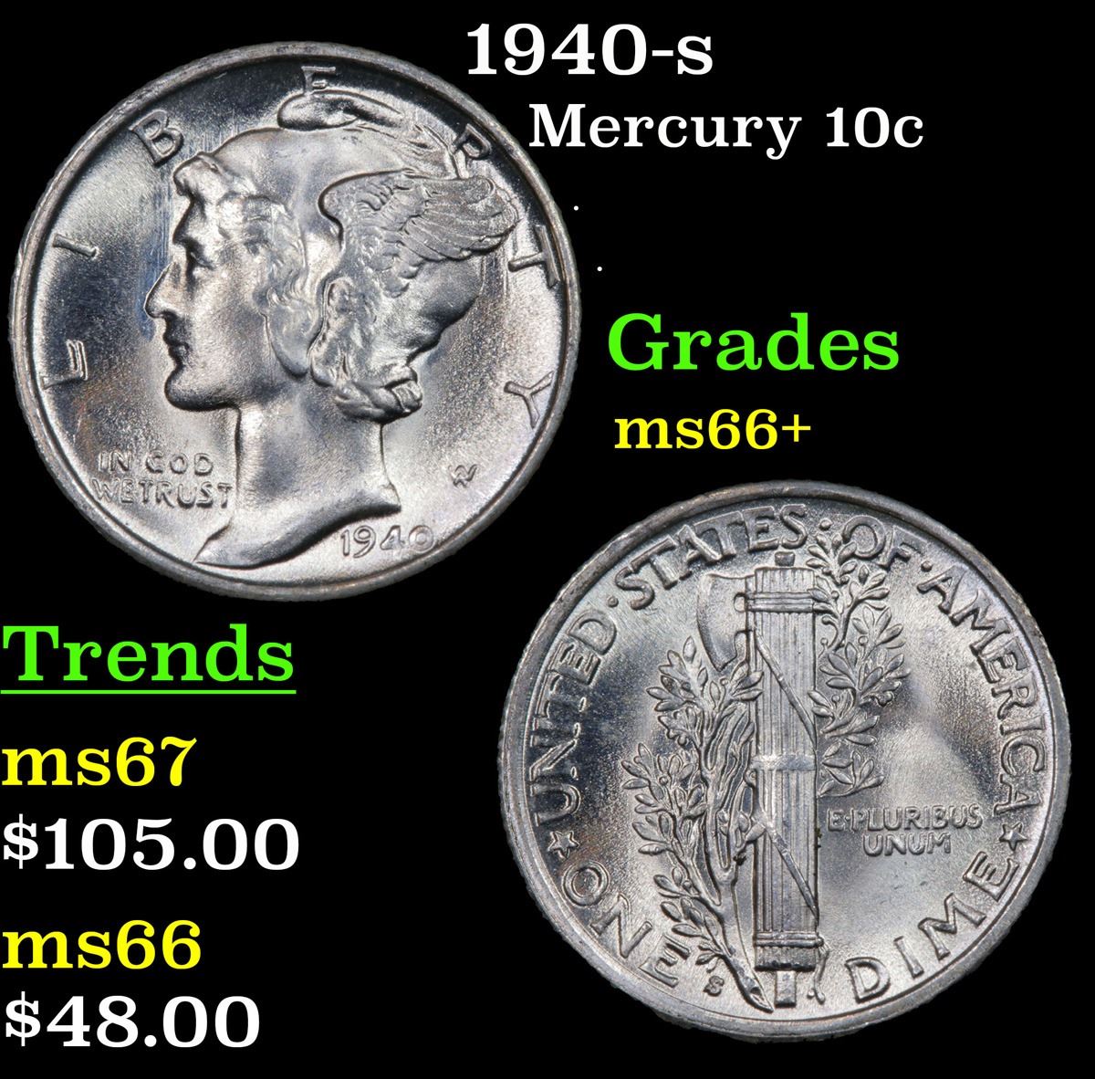 1940-s Mercury Dime 10c Grades GEM++ Unc.