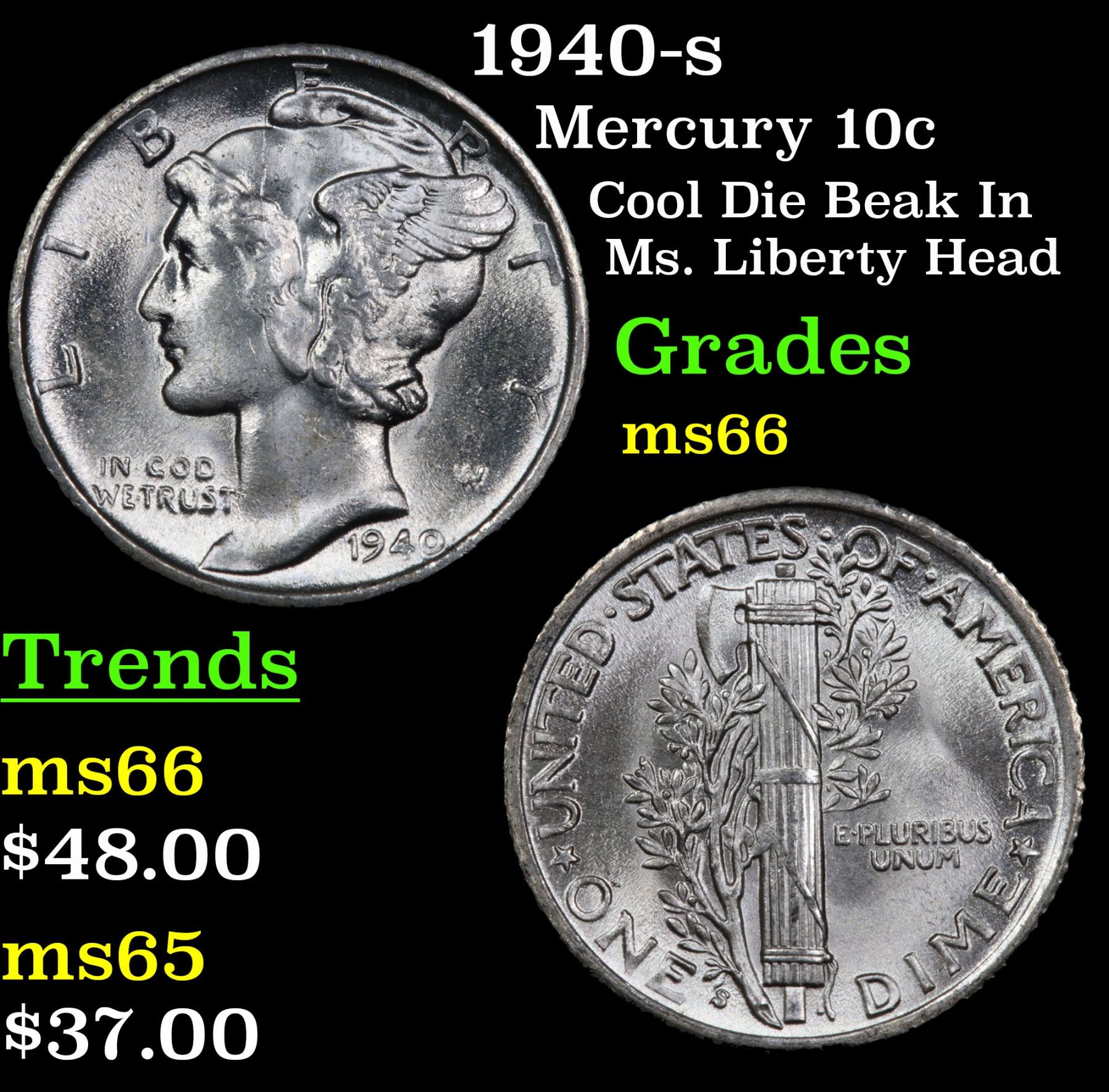 1940-s Mercury Dime 10c Grades GEM+ Unc.