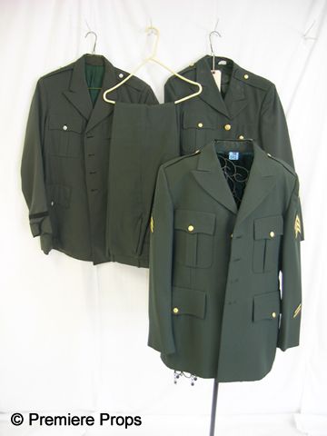 Lot of 4 military pieces from the 1940's including 3 jackets and 1 pair of pants. Lot of 3 calls "A" military uniforms including 2 with pants, coat and shirt and 1 with pants coat and pocket hat. Lot of 3 uniforms from the 1940's each including pants, shirt and coat.
