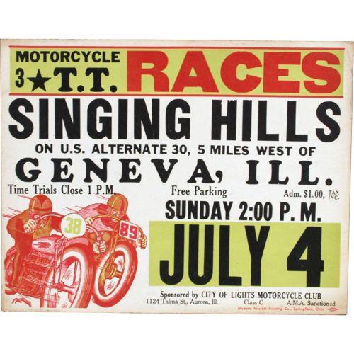 Motrcycle Races Color Cardboard Poster "July 4th Races" 1940's 11 x 14"
