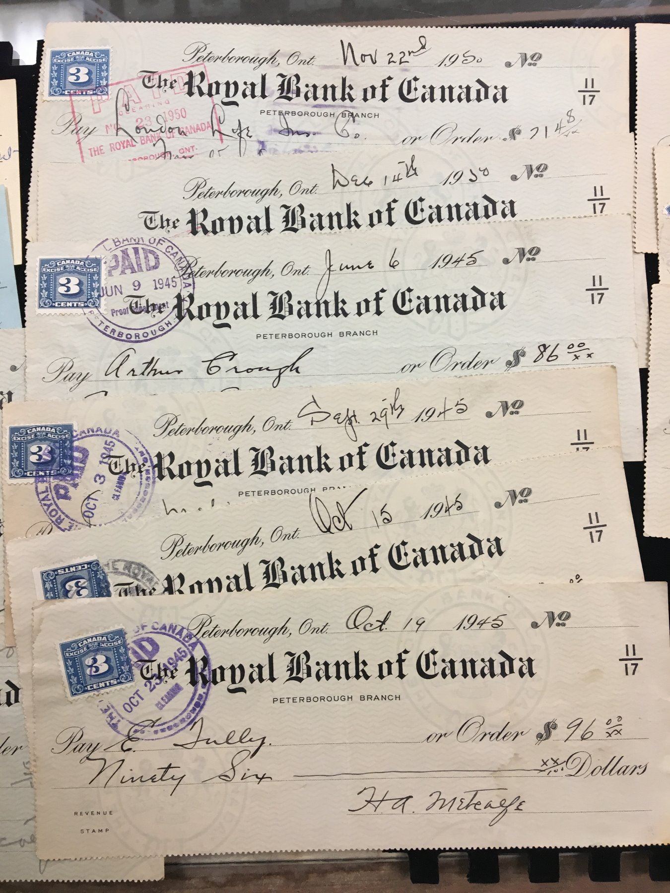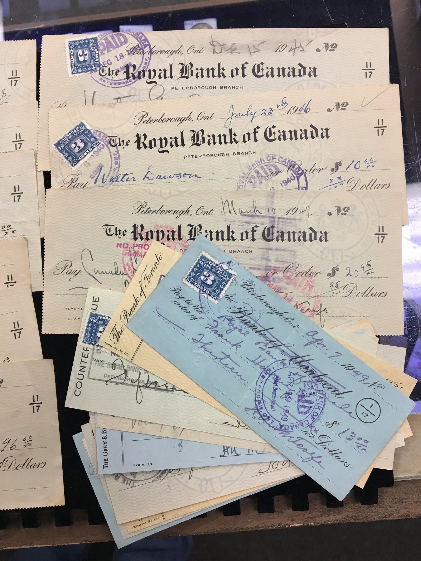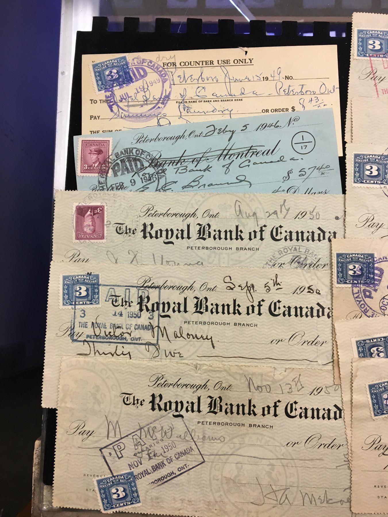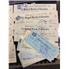 INTERESTING MIX OF CASHED CHEQUES FROM THE 19040,s.LOTS OF OLD STAMPS TOO!