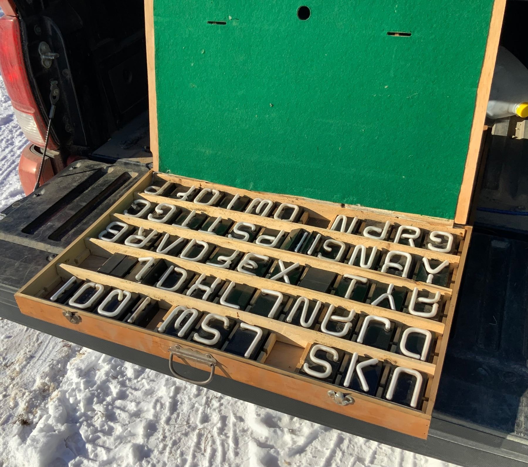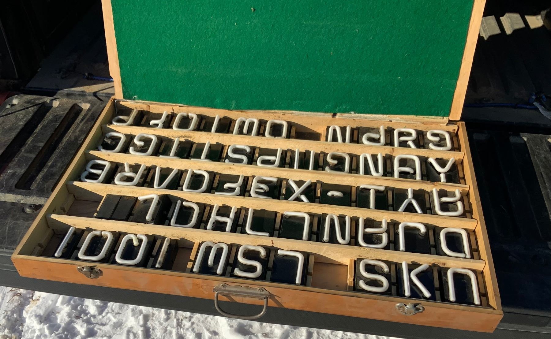 1940's Portable Neon Sign with Interchangeable 3" Characters. 27"x11"x7.5" works Came From Coads DrugStore