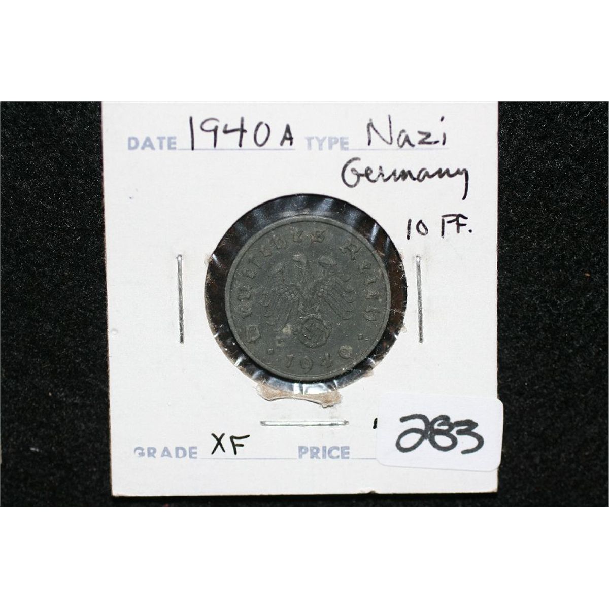 1940A Nazi Germany 10 Reichspfennig Foreign Coin, XF, Flying Eagle w/Swatstika