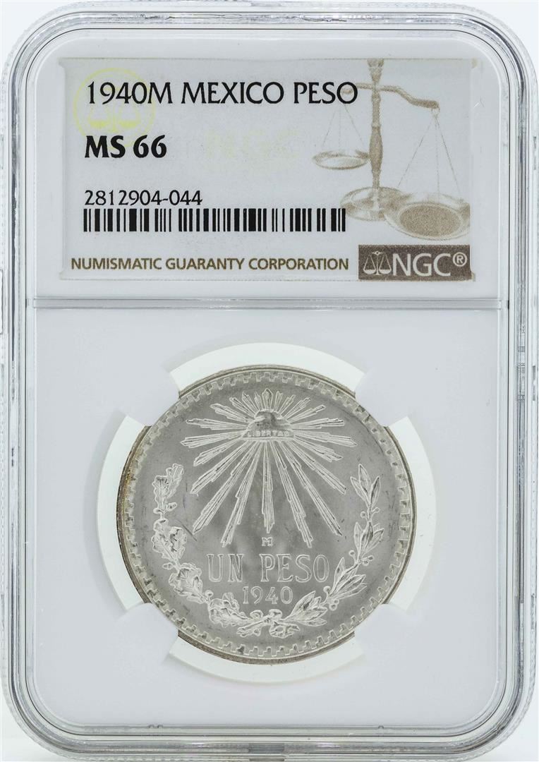 One 1940M Mexico Peso Silver Coin NGC MS66. NGC Certified.