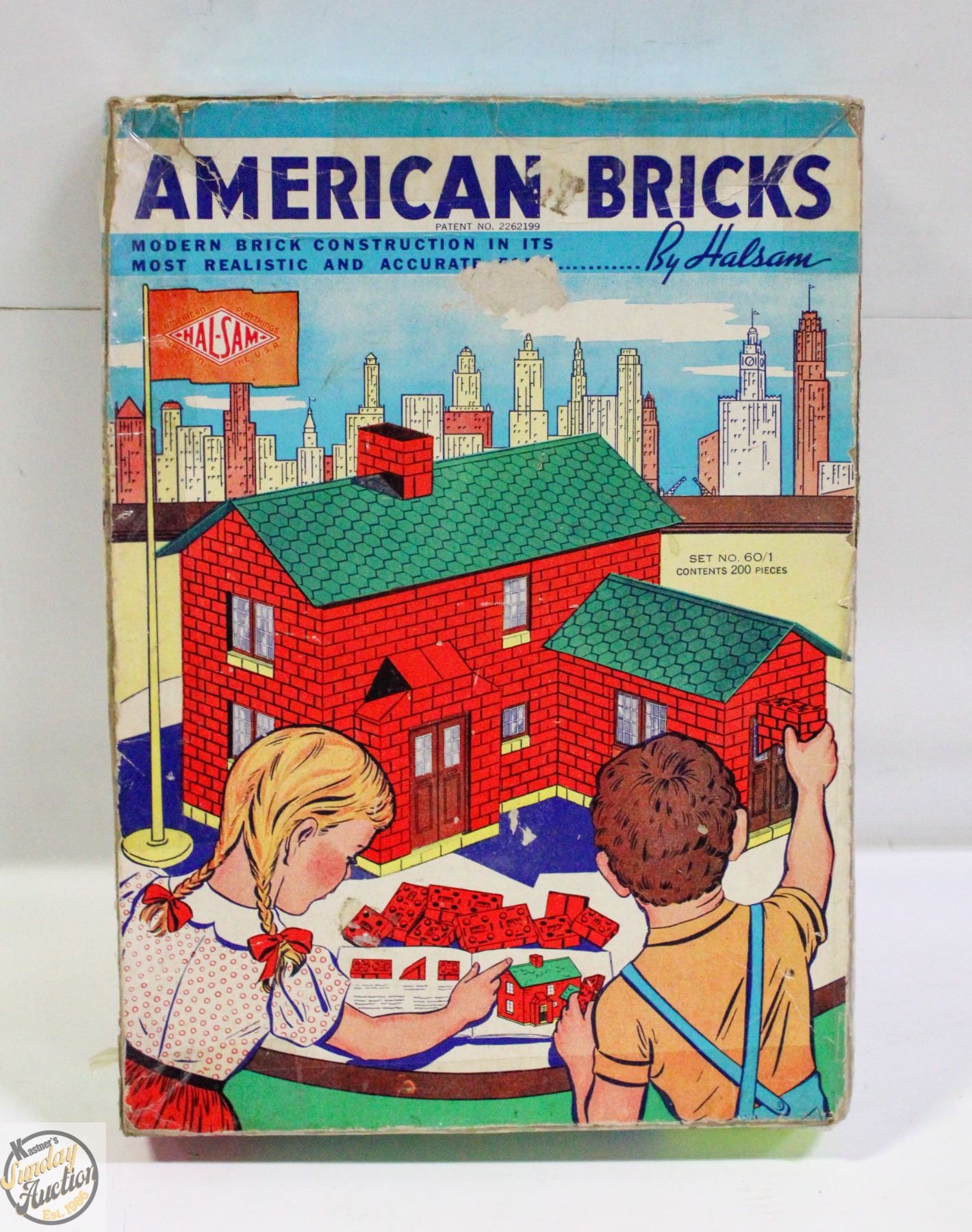 1940S AMERICAN BRICKS BY HALSAM TOY BUILDING SET