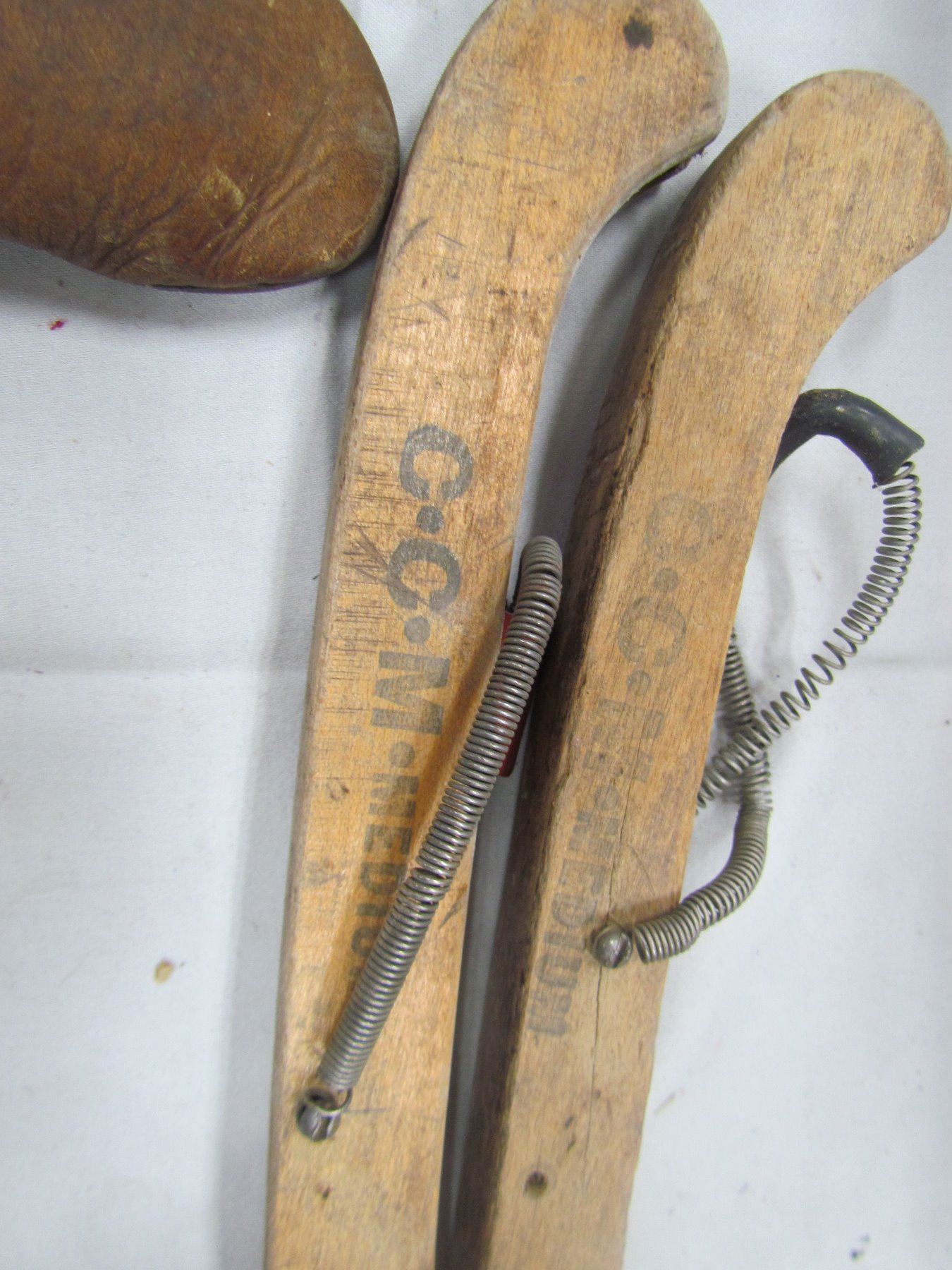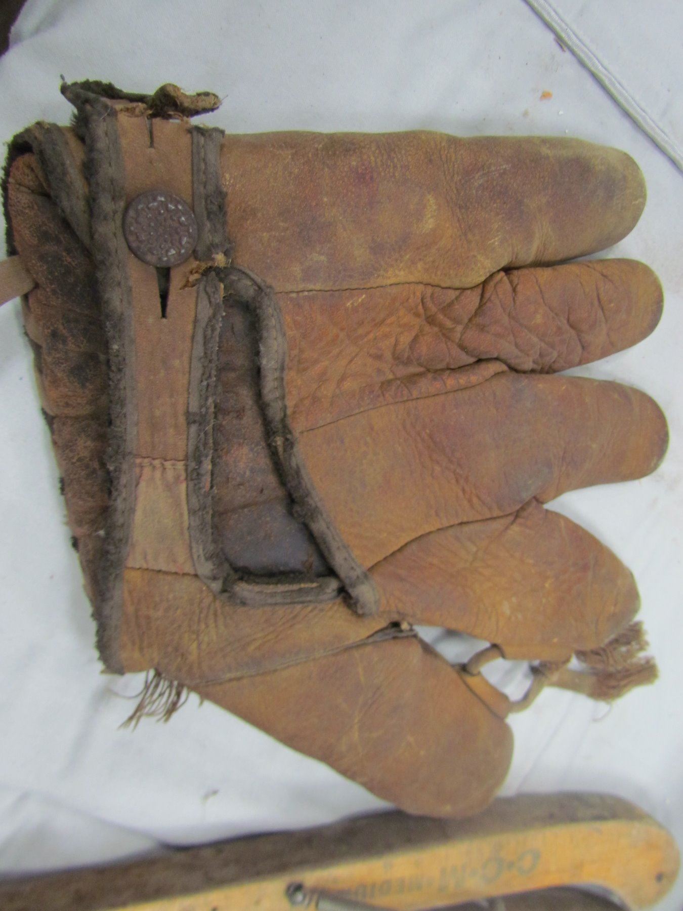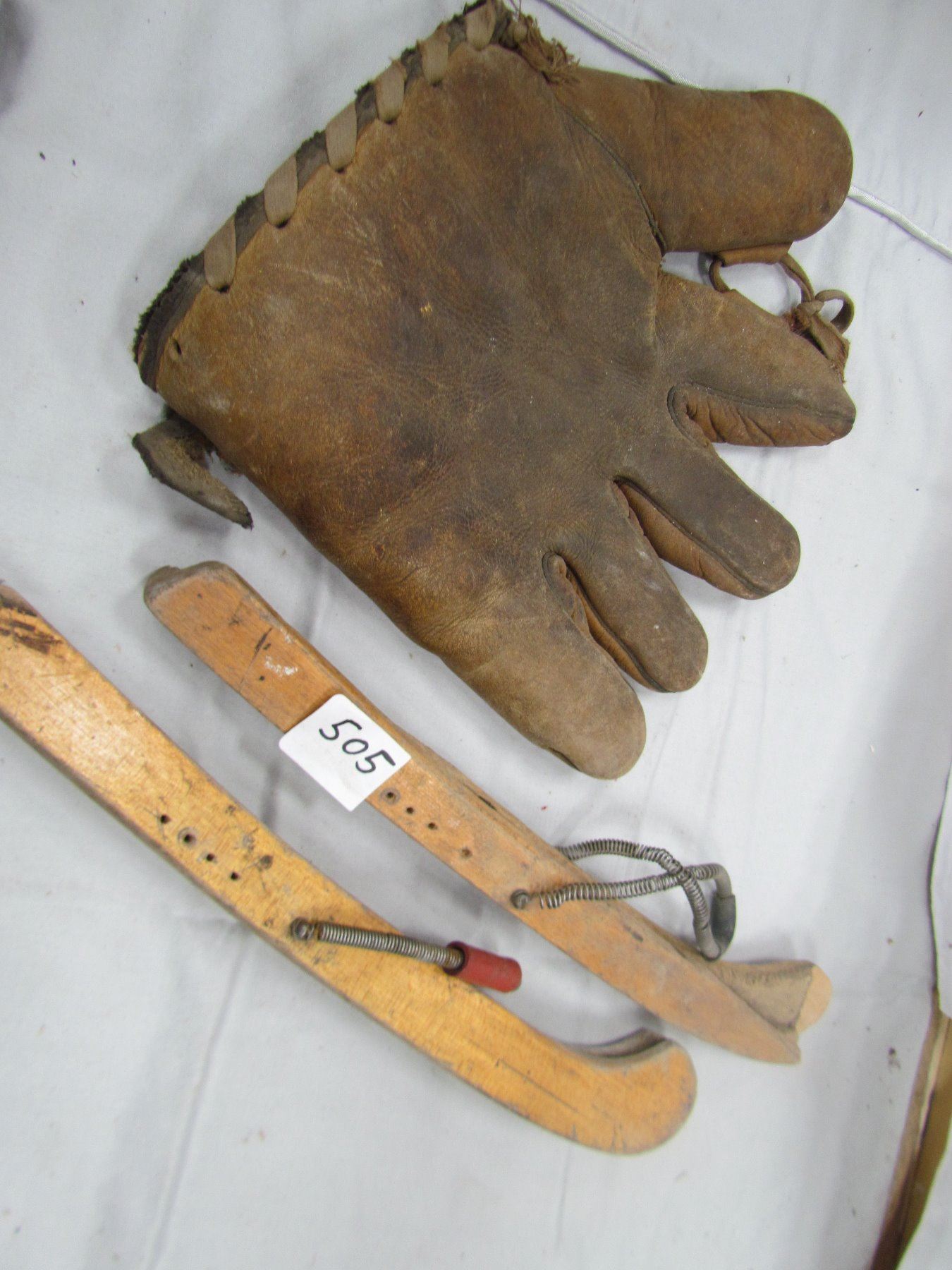 1940S BALL GLOVE AND WOODEN SKATE GAURDS (CCM)