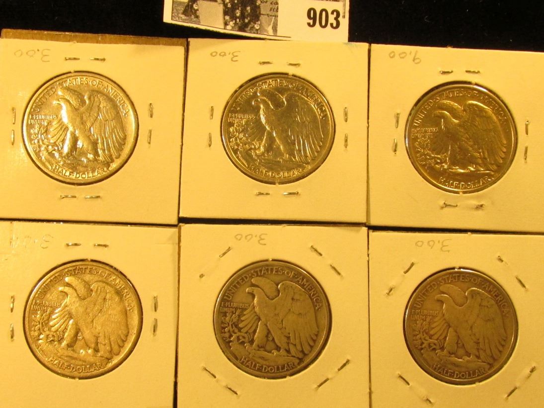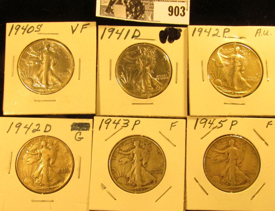 1940S VF, 41D VF, 42P AU, 42D Good, 43P Fine, & 45P Fine Walking Liberty Half Dollars.