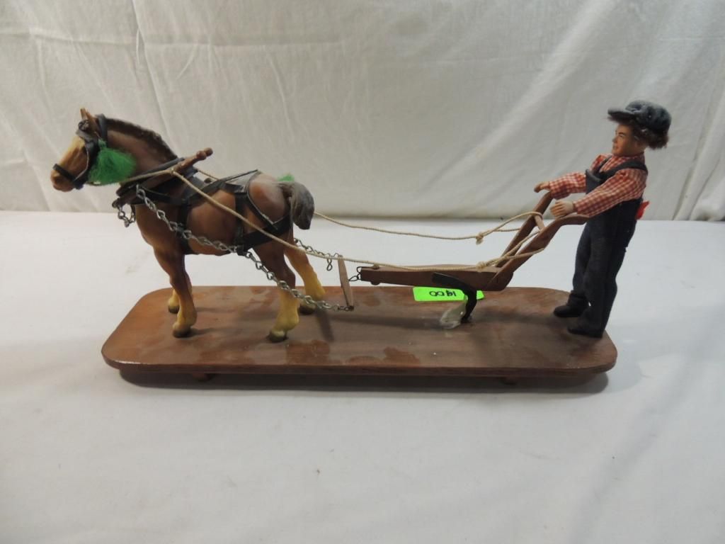 VINTAGE DETAILED DISPLAY ART. FOLK ART. VINTAGE FARM HORSE DISPLAY. AS SHOWN SEE PHOTO FOR MORE DETAILS.
