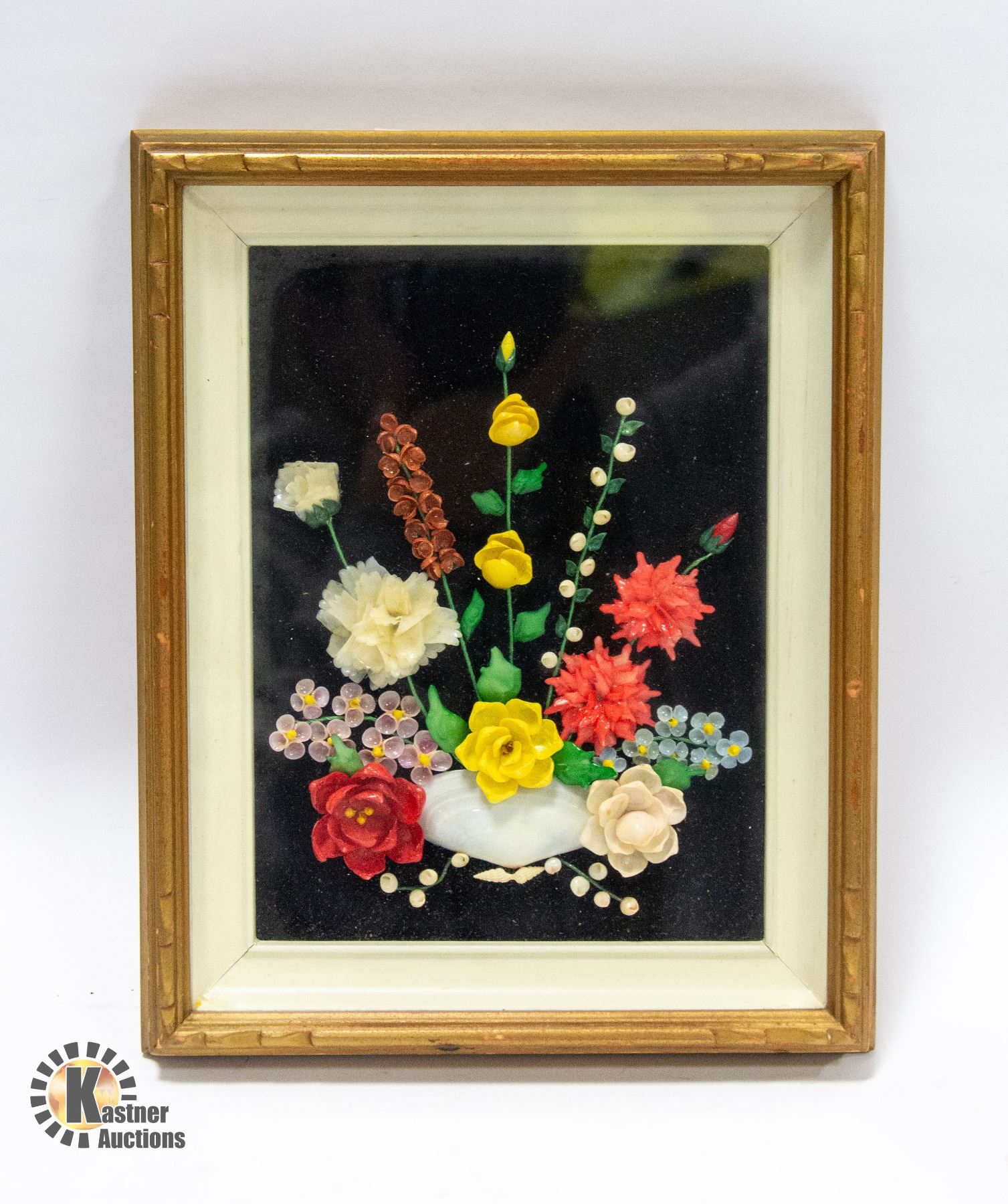 VINTAGE VIBRANT COLORS AGAINST VELVET IN A SHADOWBOX FRAME **ALL ITEMS MUST BE REMOVED BY 5PM SATURDAY, FEBRUARY 3RD 2024. ALL REMAINING ITEMS WILL BE SUBJECT TO A $6.00 PER DAY STORAGE CHARGE. ANY ITEMS REMAINING AFTER MONDAY, FEBRUARY 19TH, 2023 WILL BE CONSIDERED FORFEITED. NO REFUNDS WILL BE ISSUED FOR FORFEITED ITEMS. TO SCHEDULE A PICK UP APPOINTMENT CLICK HERE