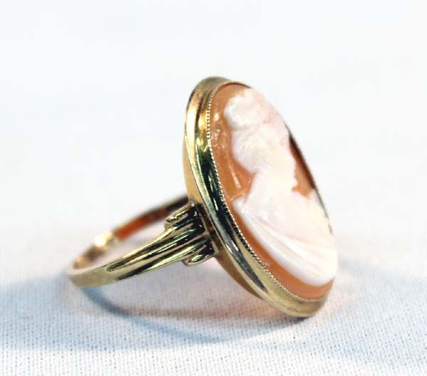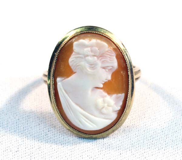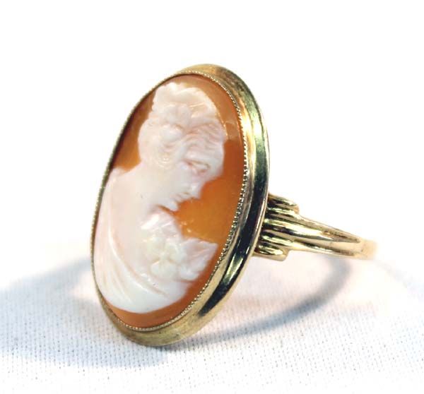 1940s 10k Shell Cameo Ring. Lovely vintage ring, 10k gold. Size 7.5.