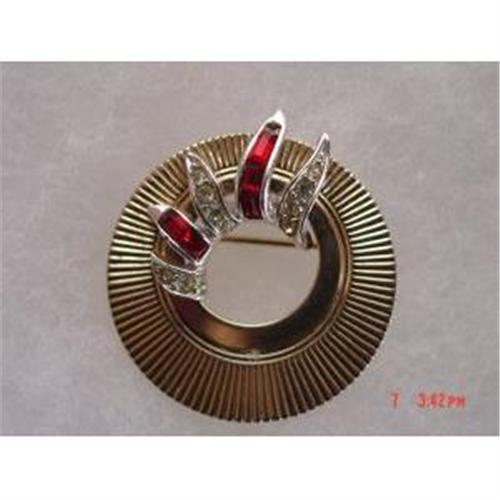 <tr><td>Title:1940s? Boucher Red Clear Rhinestone Brooch</td></tr>