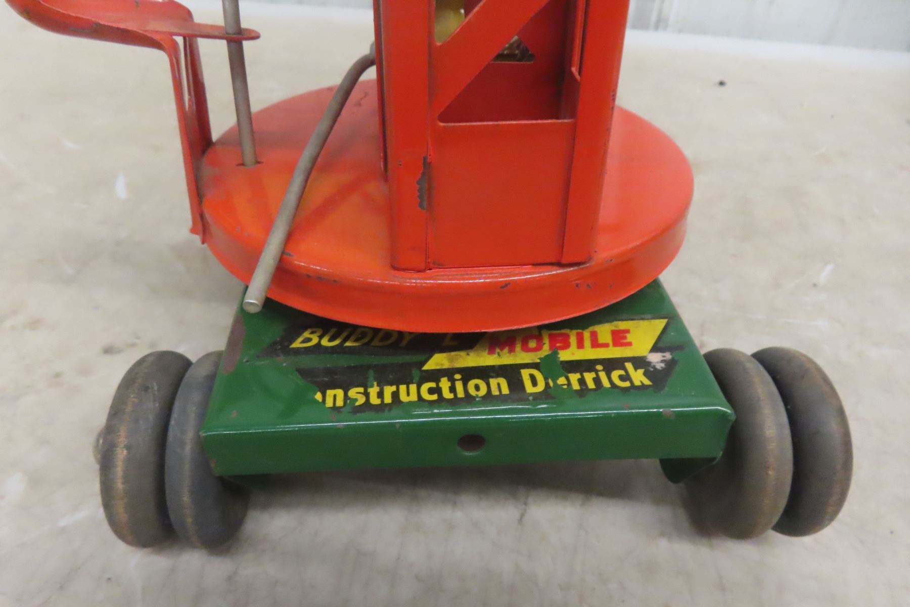 1940s Buddy L Mobile Construction Derrick Pressed Metal 8'' Long x 24'' High