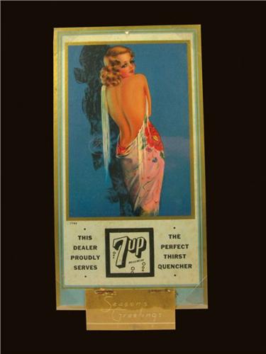 1940s Calendar for 7-UP, depicting beautiful pin up girl, artist Devorss. Excellent condition. 5 1/2 X 11 1/4 inches.