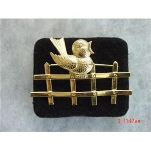 Here is a 1940s Signed Forstner Sterling Vermeil Bird Brooch on a fence. This is extremely attractive and excellent condition. This company started in the 1920s and is now out of business. This item will continue to appreciate in value!
