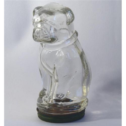 <tr><td>Title:1940s Figural Bulldog Clear Glass Flask Candy</td></tr>