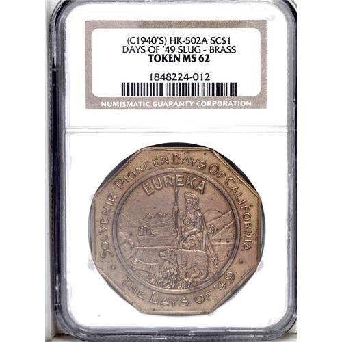 (1940s)HK-502A Days of 49 Slug, MS62 NGC.These were iss