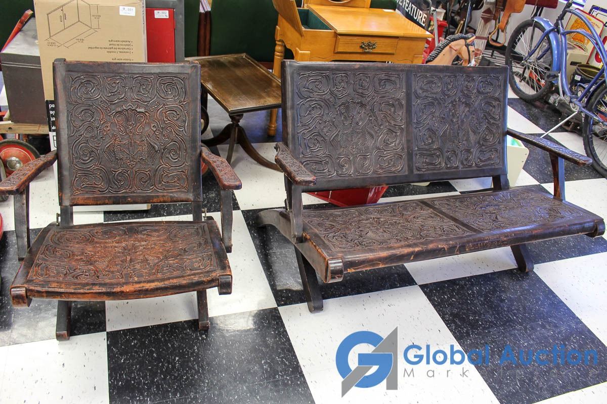 Bench is 51"x30"x30, Chair is 27"x30"x30"