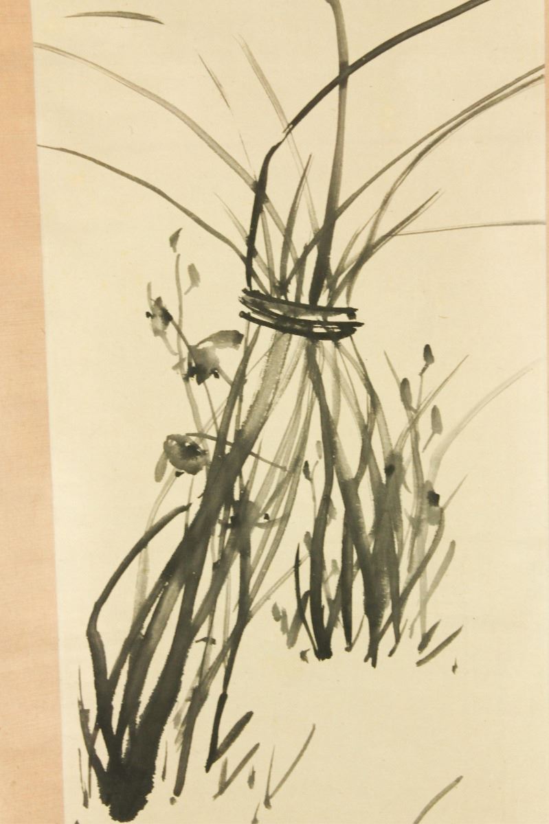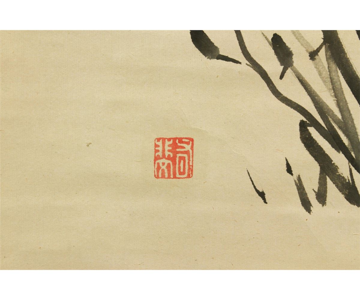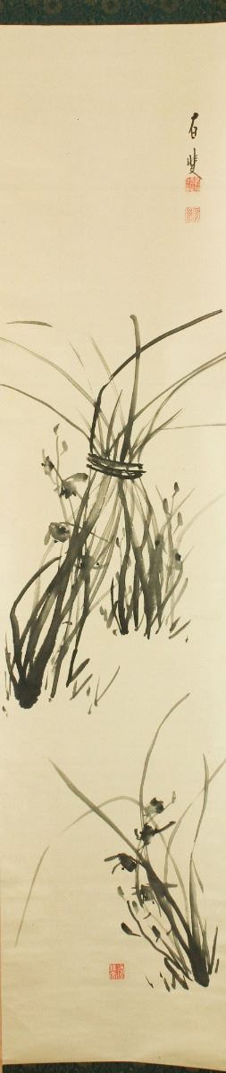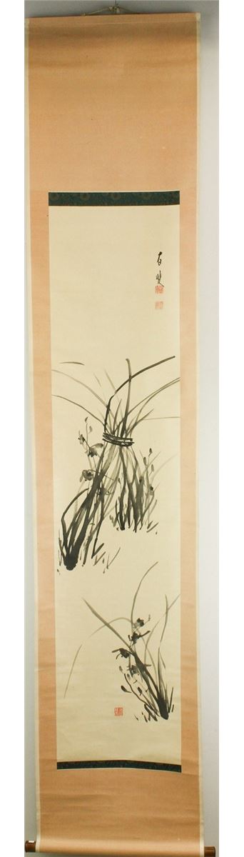 Orchid clump; Japanese ink on paper; 1940s; hanging scroll; signed and inscribed with three artist seals; 30 cm x 130 cm