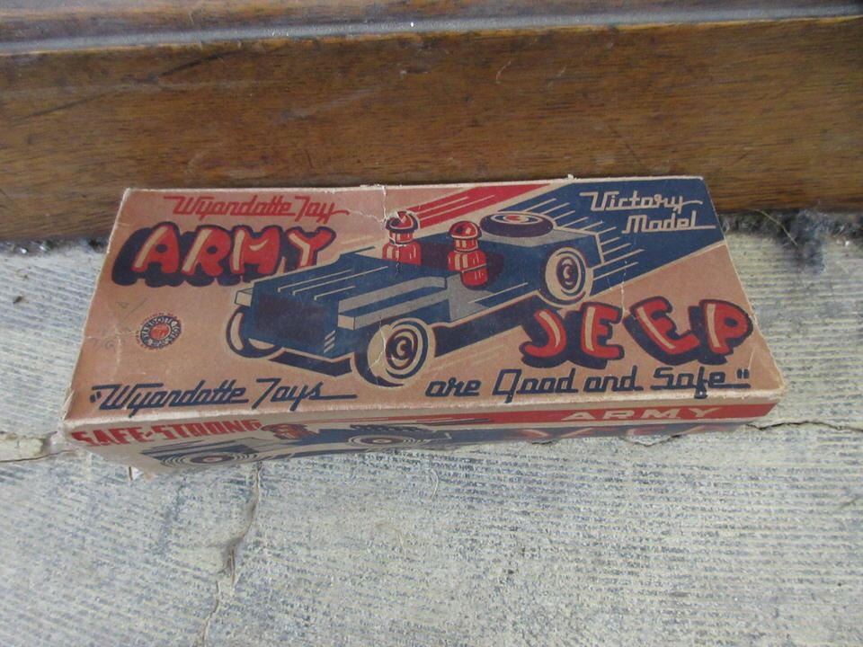 Spare Tire & 2 Soldiers. With Original Box & Stamp. Wood. 9" x 4"