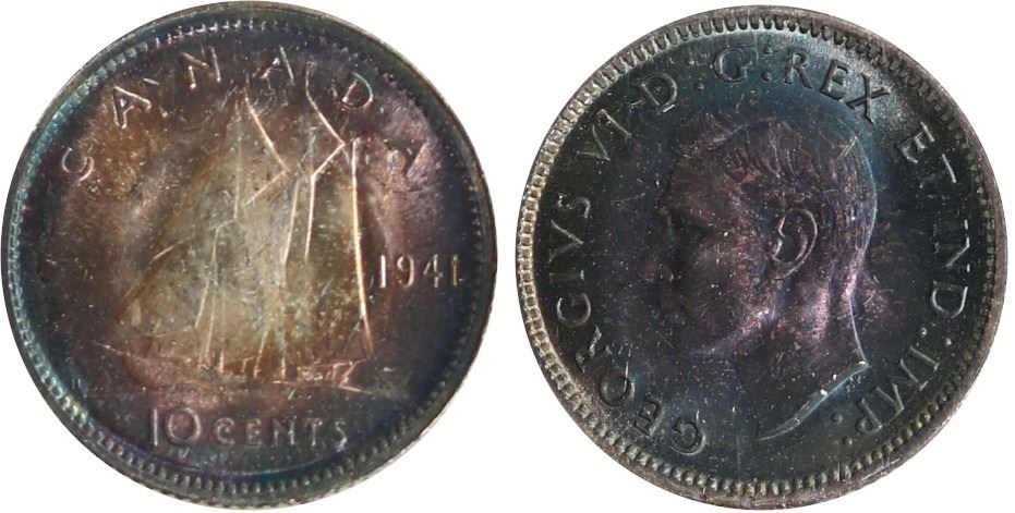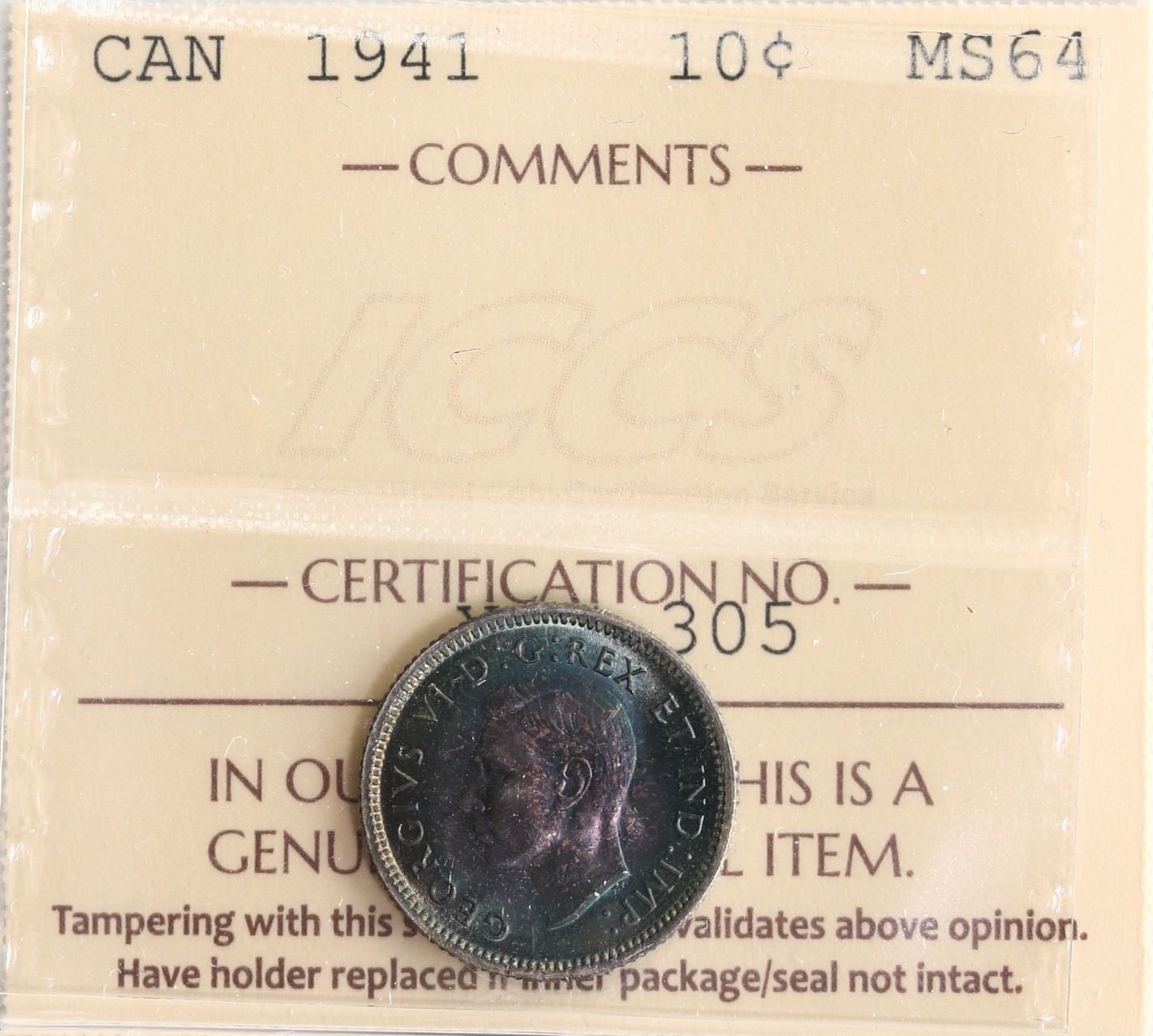 1941 10¢ ICCS Very Choice Mint State-64, Beautifully toned. Worth a premium bid.