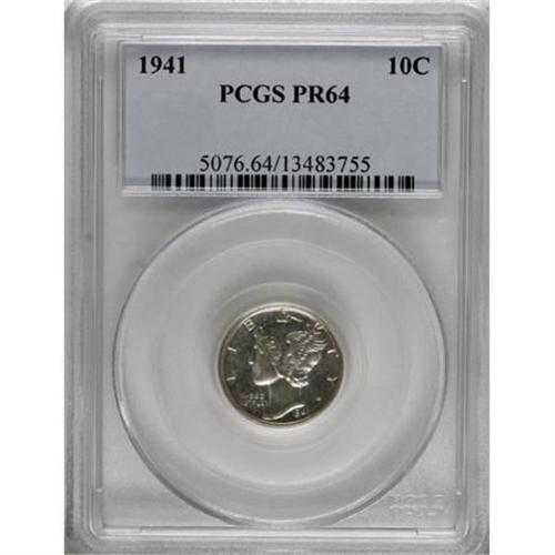 <B>1941 10C PR64 PCGS.</B></I> PCGS Population (875/2593). NGC Census: (342/1849). Mintage: 16,557. Numismedia Wsl. Price for NGC/PCGS coin in PR64: $180. (#5076)<BR><BR><B>Coin Engraver:</B> Adolph A. Weinman<BR><BR><b>Shipping:</b> Coins & Currency (<a target="_blank" href="http://www.heritageauctions.com/common/shipping.php">view shipping information</a>)