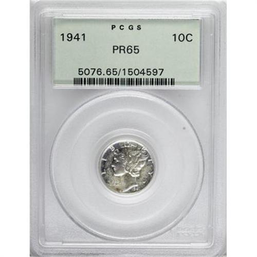 <B>1941 10C PR65 PCGS.</B></I> PCGS Population (1301/1282). NGC Census: (634/1191). Mintage: 16,557. Numismedia Wsl. Price for NGC/PCGS coin in PR65: $260. (#5076)<BR><BR><b>Shipping:</b> Coins & Currency (<a target="_blank" href="http://www.heritageauctions.com/common/shipping.php">view shipping information</a>)