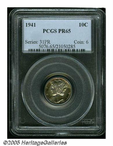 <B>1941<10C> PR65 PCGS.</B></I> Splashes of green and rose iridescence adorn the obverse.