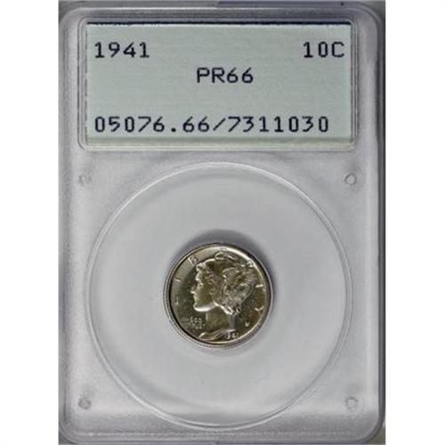<B>1941 10C PR66 PCGS.</B></I> PCGS Population (993/305). NGC Census: (885/323). Mintage: 16,557. Numismedia Wsl. Price for NGC/PCGS coin in PR66: $292. (#5076)<BR><BR><B>Coin Engraver:</B> Adolph A. Weinman<BR><BR><b>Shipping:</b> Coins & Currency (<a target="_blank" href="http://www.heritageauctions.com/common/shipping.php">view shipping information</a>)