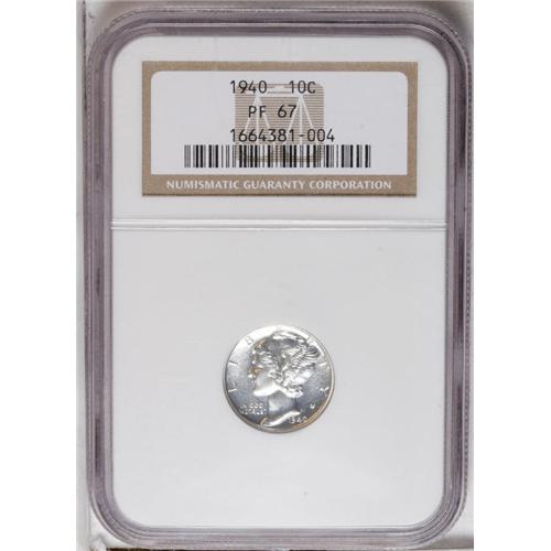 <B>1941<10C> PR67 NGC</B></I> Bright and untoned throughout without a single mentionable flaw. A Superb Gem of high caliber with razor-sharp detail and excellent eye appeal.